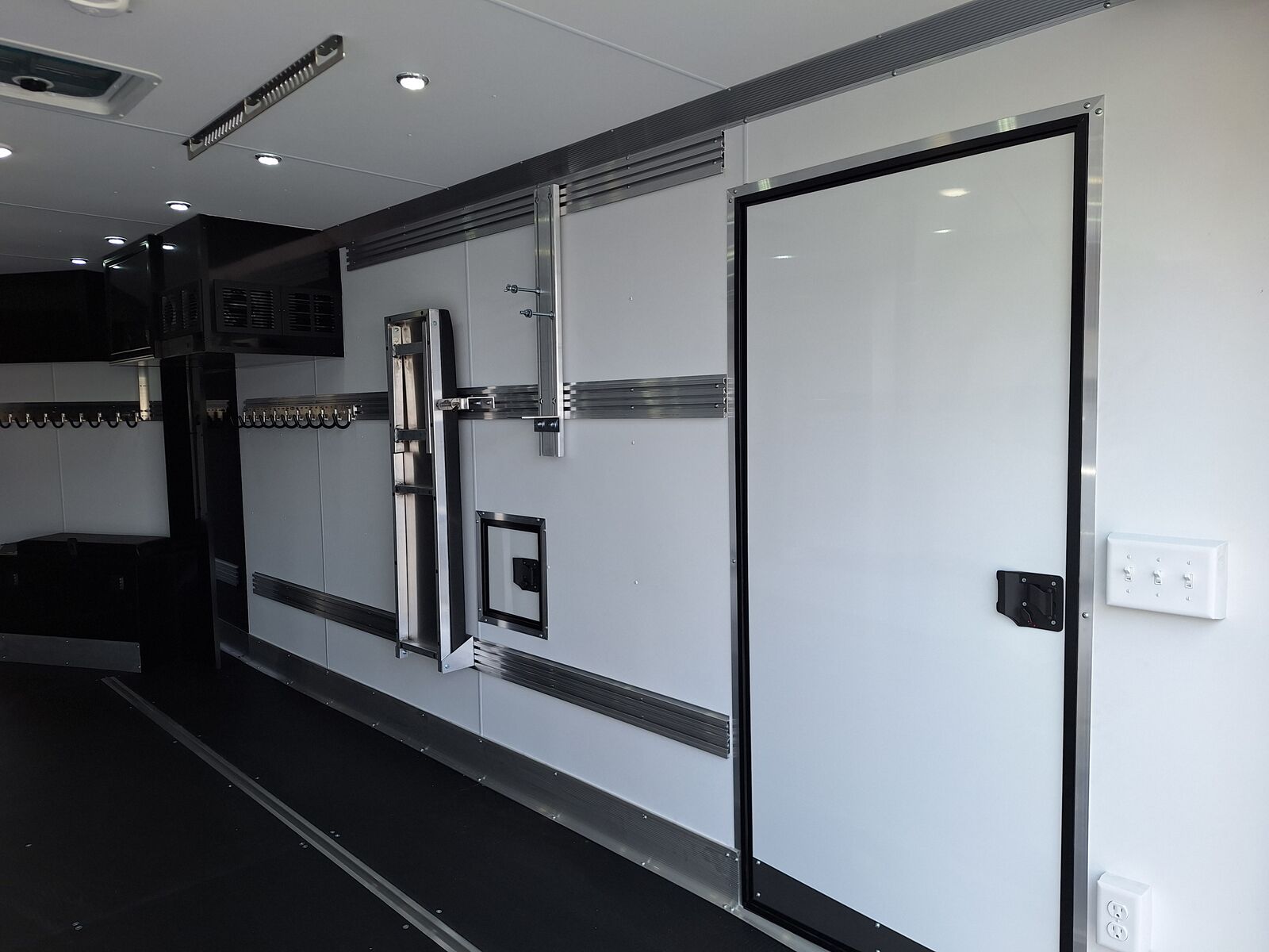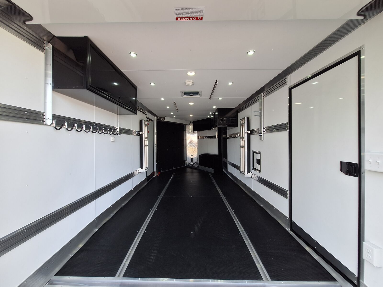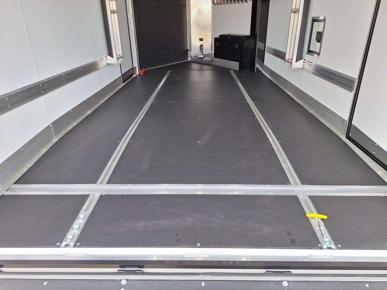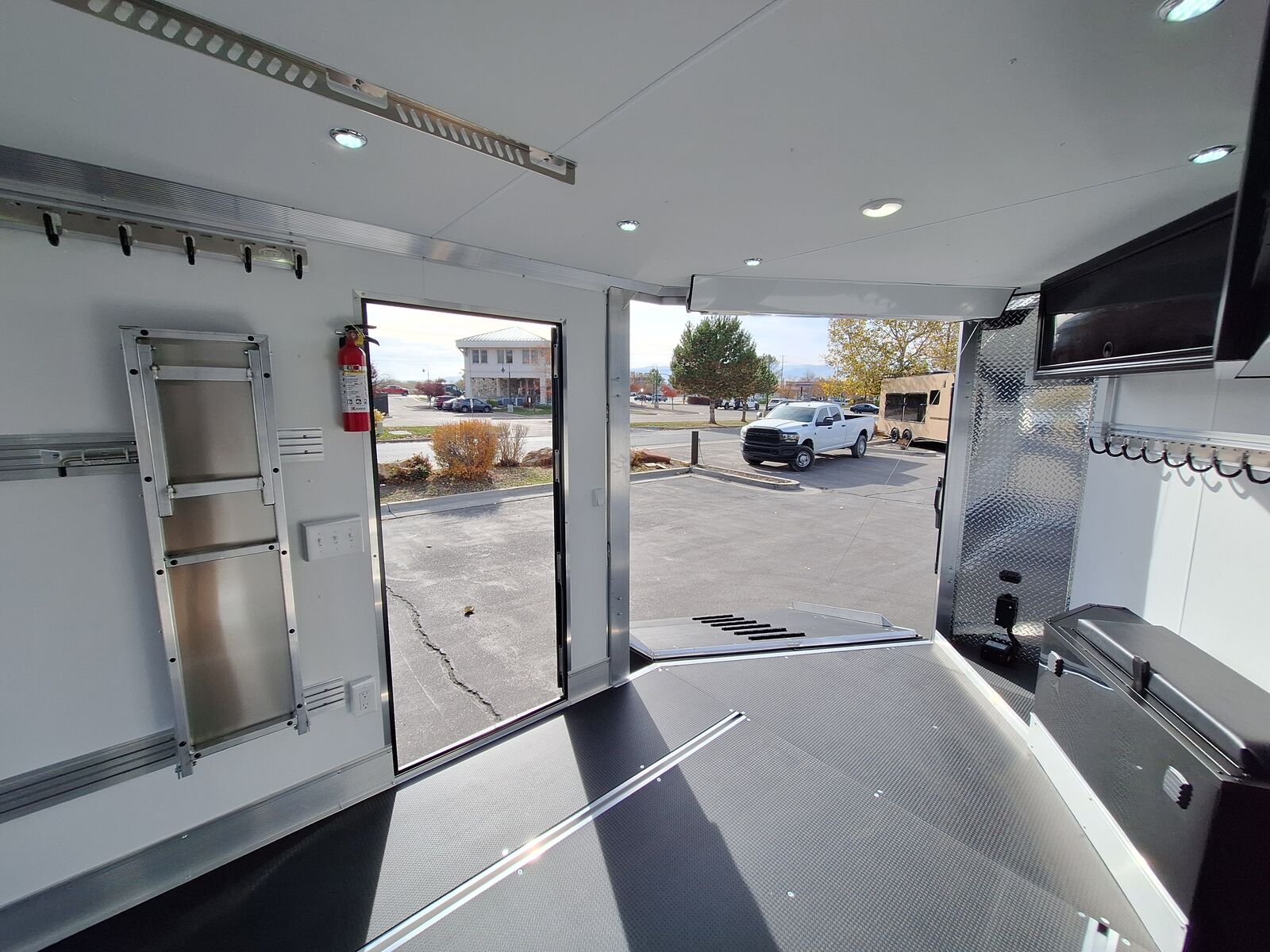 All-Aluminum Construction One-Piece Aluminum Roof Visible Beavertail Construction V-Nose Construction w/12" Radius 24" Stone Guard Dexter Torsion Ride Axles (45 Degree Down) Spread Axle Design w/Tapered Skirting (2) Rows of Recessed Slide Track w/(2) Rows Sliding D-Ring per Machine Tapered Rear Ramp Door w/Spring Assist (2) 32”x72” Side Access Door w/Flip Down Aluminum Step (1) 14”x14” Fuel Door(s) Roof Vent (3) LED Dome Lights w/Switch (5) LED Porch Lights: (2) Over Rear Ramp, (1) Over Each SAD & (1) Over Front Ramp 110V Extreme Weather Package: (1) 60A Breaker Panel w/Converter and Motorbase Plug, (2) 3-Way Wall Switches, (1) GFCI Wall Receptacle, (1) Standard Wall Receptacle, (1) USB Receptacle, (12) Puck Lights Premium Exterior Light Package (Integrated Slim Brake and Backup Lights & Clear Lens Marker Lights) Premium Heater Package: 40# Propane Tank w/ HD Tongue-Mount, White Ceiling, Insulated Walls & Ceiling, 40K BTU Furnace, Safety Kit, Marine Grade Battery & Box, 48" Furnace Cabinet (1) 40# Propane Tank w/HD Mount Upgrade 3/4" Quad-Ply Decking White Luan Walls Boondocker Package: Upgrade to QuadPly Flooring, Wraparound Front Ramp w/ Spring Assist (72" Wide Opening) & 6" Extruded Aluminum Kick Plate (2) Fold-Down Padded Bench (48”L) 48" Deluxe Boot Box w/Padded Top & Duct (Requires Furnace Pkg) Vertical Corner Duct (Requires Furnace Package) (2) 48" Premium Overhead Cabinets w/ (1) Flip-Up Door; 48"(W) x 13"(D) x 18"(H) (2) Premium Ceiling-Mounted Coat Hangers (38”, 22 Hooks) Adjustable Wall Hooks For Combo Wall (2 Hooks/18’; 4 Hooks/22’+ BP; 4 Hooks/GN) Combo Wall (3 Rows in Box, 2 Rows in V-Nose) Angled Brackets (Convert Cabinets to Combo Wall) Deluxe Floor Drain System (Full Width Slot, Exterior Clean Out) Rear Door Canopy (2020 Version w/4 Puck Lights) Screwless .030" Bonded Sides Powdercoat Exterior Package 4” Trim (Top/Rear) 7” Trim (Bottom) Limited Lifetime Warranty