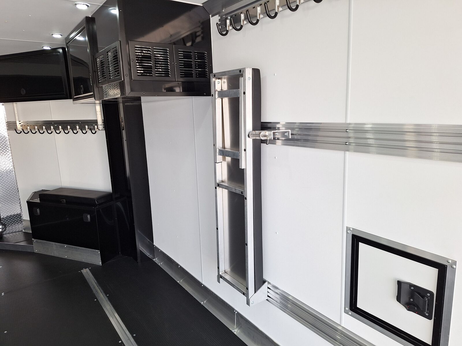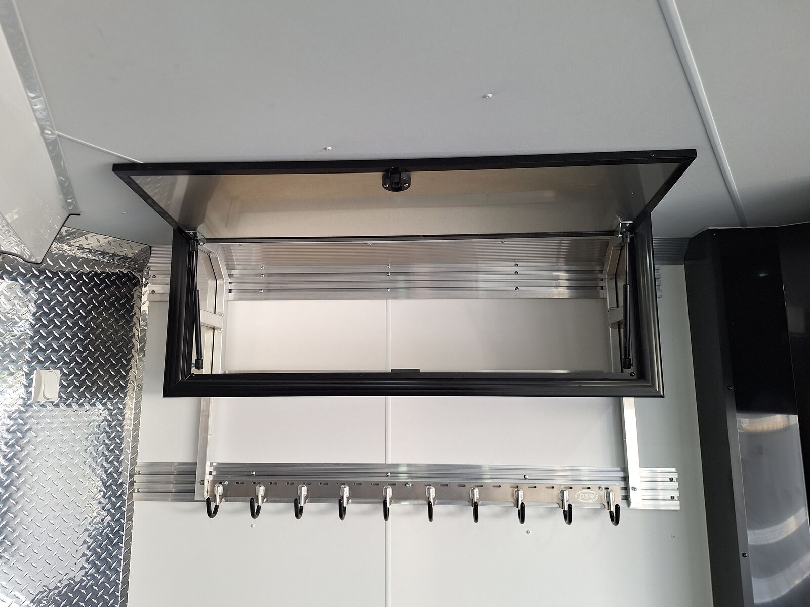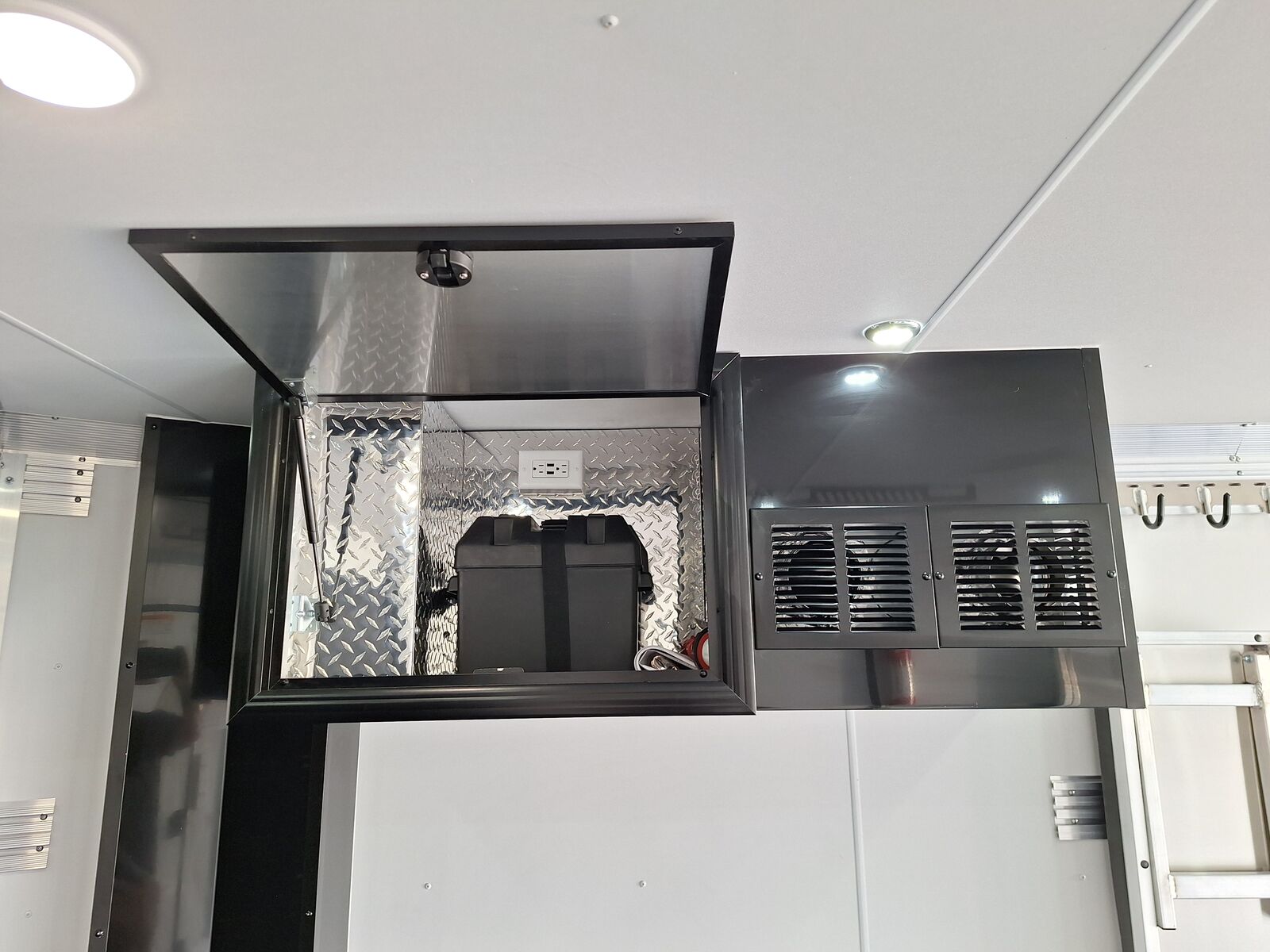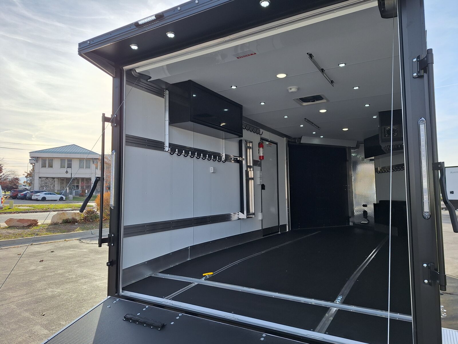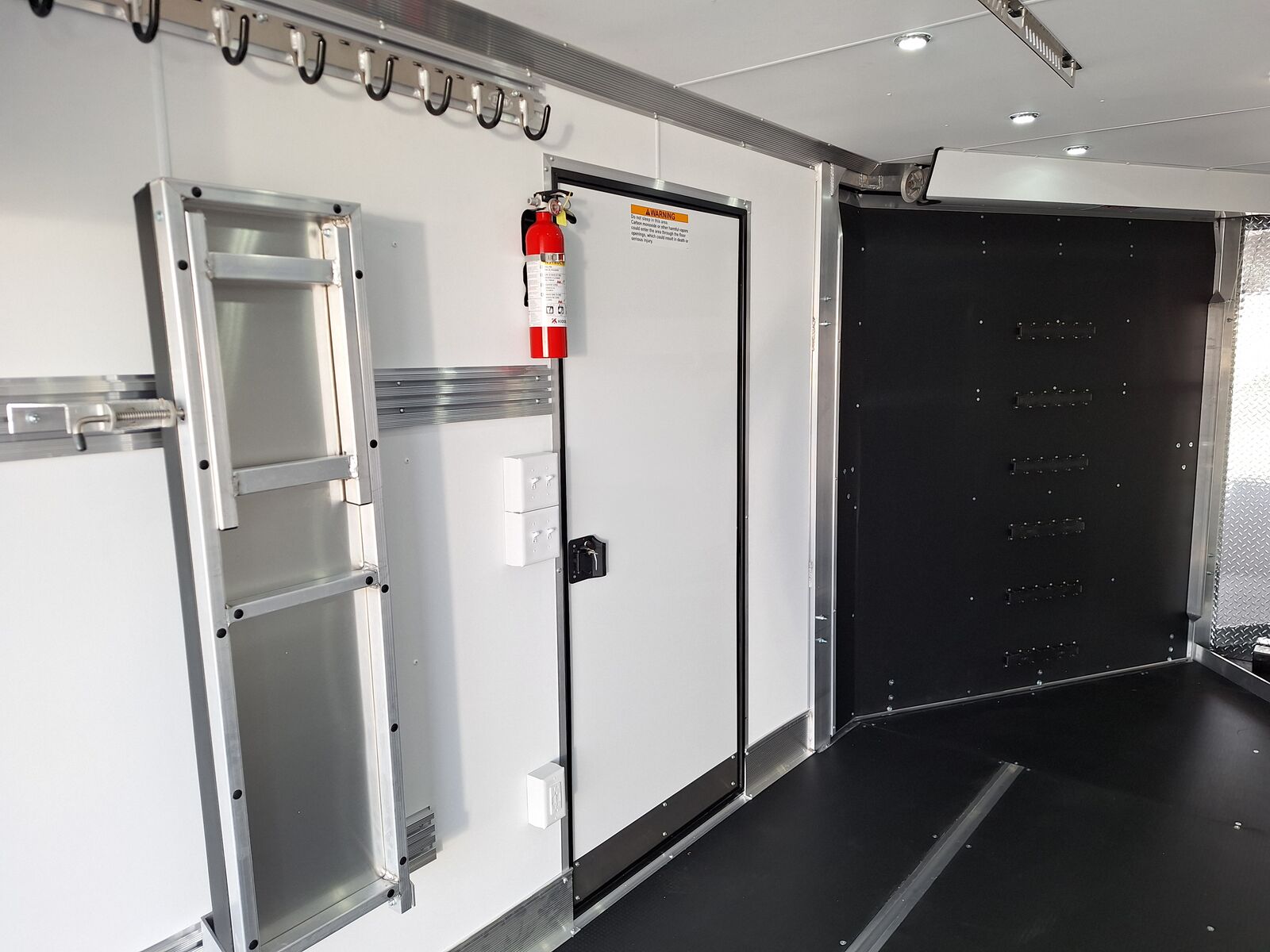 All-Aluminum Construction One-Piece Aluminum Roof Visible Beavertail Construction V-Nose Construction w/12" Radius 24" Stone Guard Dexter Torsion Ride Axles (45 Degree Down) Spread Axle Design w/Tapered Skirting (2) Rows of Recessed Slide Track w/(2) Rows Sliding D-Ring per Machine Tapered Rear Ramp Door w/Spring Assist (2) 32”x72” Side Access Door w/Flip Down Aluminum Step (1) 14”x14” Fuel Door(s) Roof Vent (3) LED Dome Lights w/Switch (5) LED Porch Lights: (2) Over Rear Ramp, (1) Over Each SAD & (1) Over Front Ramp 110V Extreme Weather Package: (1) 60A Breaker Panel w/Converter and Motorbase Plug, (2) 3-Way Wall Switches, (1) GFCI Wall Receptacle, (1) Standard Wall Receptacle, (1) USB Receptacle, (12) Puck Lights Premium Exterior Light Package (Integrated Slim Brake and Backup Lights & Clear Lens Marker Lights) Premium Heater Package: 40# Propane Tank w/ HD Tongue-Mount, White Ceiling, Insulated Walls & Ceiling, 40K BTU Furnace, Safety Kit, Marine Grade Battery & Box, 48" Furnace Cabinet (1) 40# Propane Tank w/HD Mount Upgrade 3/4" Quad-Ply Decking White Luan Walls Boondocker Package: Upgrade to QuadPly Flooring, Wraparound Front Ramp w/ Spring Assist (72" Wide Opening) & 6" Extruded Aluminum Kick Plate (2) Fold-Down Padded Bench (48”L) 48" Deluxe Boot Box w/Padded Top & Duct (Requires Furnace Pkg) Vertical Corner Duct (Requires Furnace Package) (2) 48" Premium Overhead Cabinets w/ (1) Flip-Up Door; 48"(W) x 13"(D) x 18"(H) (2) Premium Ceiling-Mounted Coat Hangers (38”, 22 Hooks) Adjustable Wall Hooks For Combo Wall (2 Hooks/18’; 4 Hooks/22’+ BP; 4 Hooks/GN) Combo Wall (3 Rows in Box, 2 Rows in V-Nose) Angled Brackets (Convert Cabinets to Combo Wall) Deluxe Floor Drain System (Full Width Slot, Exterior Clean Out) Rear Door Canopy (2020 Version w/4 Puck Lights) Screwless .030" Bonded Sides Powdercoat Exterior Package 4” Trim (Top/Rear) 7” Trim (Bottom) Limited Lifetime Warranty