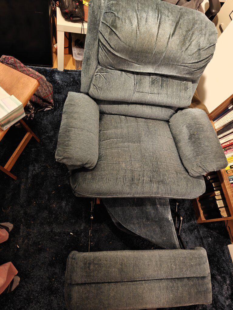 This recliner has some wear and tear but it's constant and functions. The right arm feels a little loose and could use some repair. Cash or Venmo. Pickup only. OBO