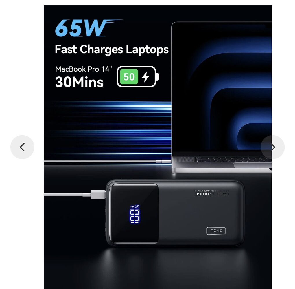 I bought extra and didn’t end up using this. 20,000 MaH, 65 Watt fast charge with 2 usb-C ports.