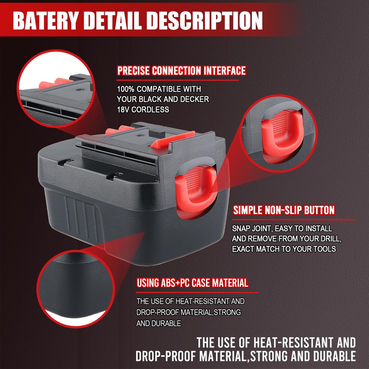 Voltage: 14.4 Volt | Capacity: 4800mAh | Battery Type: Ni-Mh Battery | 2 Packs; Newest design with 3 prongs, please make sure that whether compatible with your charger or power tool!","CompatibilityReplacement for Black and Decker 14.4V battery 499936-34, 499936-35, A14, A144, A144EX, A14F, B-8316, BD1444L, BPT1048, HPB14, FIRESTORM FS140BX, FSB14","High Quality High quality cells with 30% of the electricity before the sale, please let the battery completely when you first use it. So that the Ni-Mh battery can be fully charged in the future use.","Safe & ReliableBuilt-in integrated chip,Safeguard features against incorrect voltage, short circuit, internal overheating,over charge and over discharge,imbalanced electric","After-Sales ServiceALL VANTT Direct products coming with 12 months to resolve quality issues, If you have any problems please contact us ,we will solve your problem within 24 hours."}