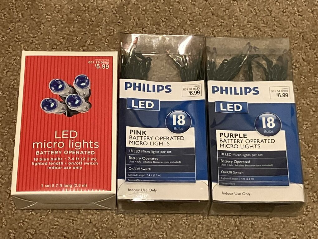 VenmoNeed lots of battery powered lights for a project? Each set has a string of 18 micro lights and uses 4 AA batteries (not included)