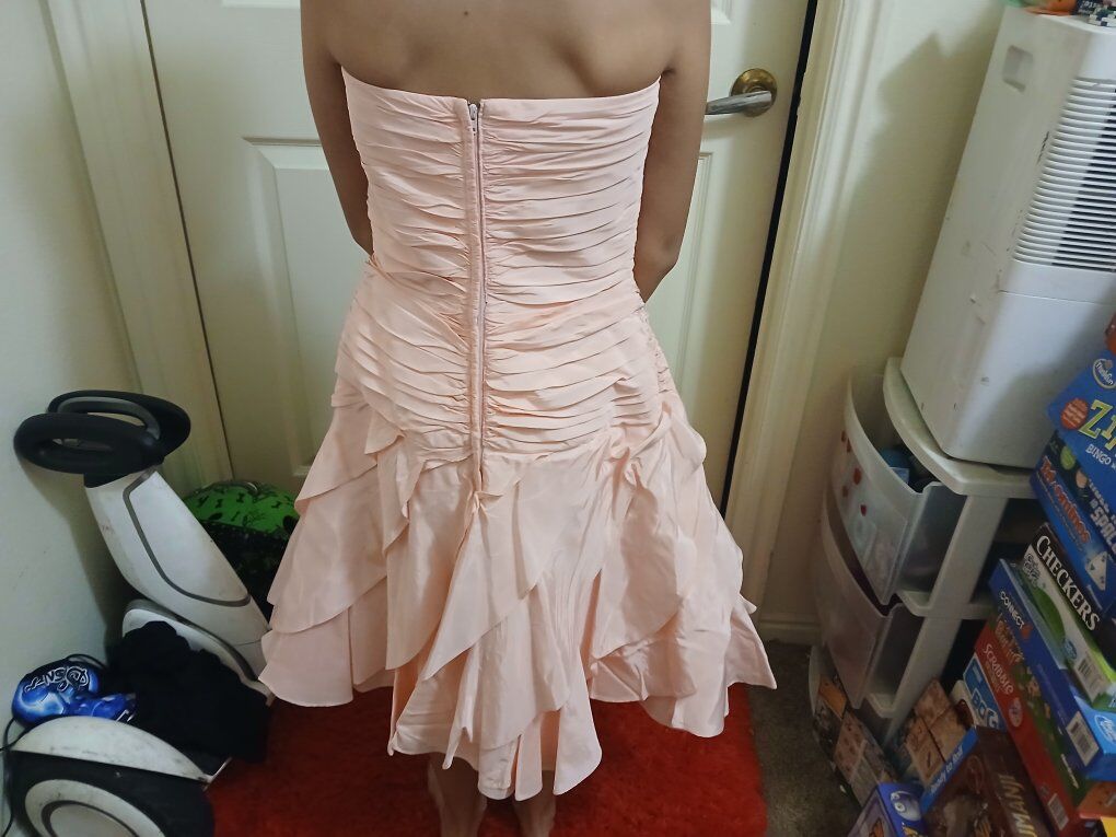 beautiful womens strapless peach color dress size small im asking $40 O.B.O