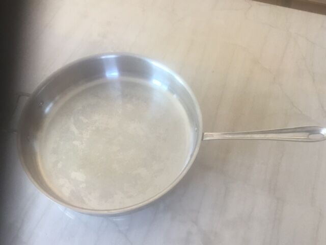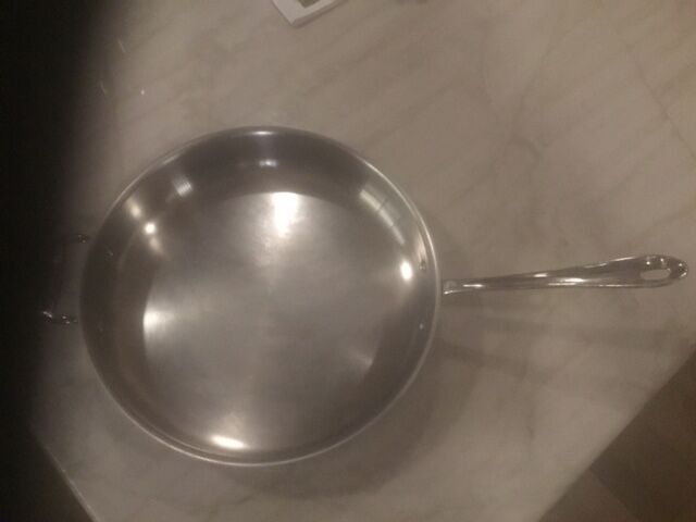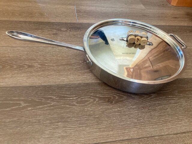 High quality 12" pan with lid. This is excellent to cook paella, fried chicken, pork chops, any large dinner. Made from premium stainles steel. Some scratches on bottom from stove burner. Retails new for approx. $120.00