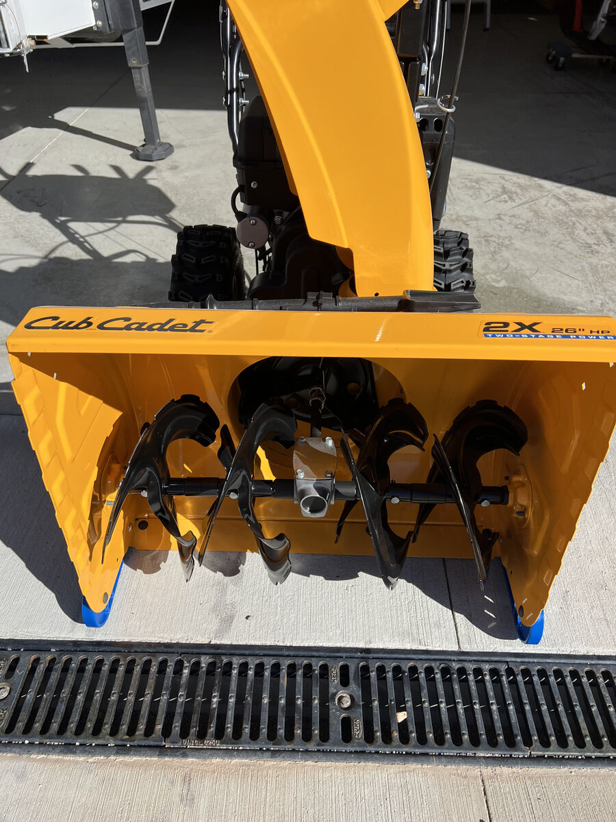 ZelleCub Cadet 2X 26 in. 243cc IntelliPower Two-Stage Electric Start Gas Snow Blower with Power Steering and Steel Chute Tackle winter weather with this 2X 26 in. 243cc Gas Two-Stage Snow Blower with IntelliPOWER Engine engineered to take on up to 12 in. of snow*. IntelliPOWER technology is designed to deliver consistent power in heavy, deep, and wet snow conditions. Push button electric start is designed for reliable starting without the need to pull start. Includes trigger-controlled power steering with a self-propelled drive engineered for control, maneuverability, and single-hand operation. 243cc 4-cycle OHV Cub Cadet IntelliPOWER engine delivers the power to help clear snow on driveways up to 12 parking spaces in size IntelliPOWER technology is engineered to deliver consistent power in heavy, deep, and wet snow conditions by automatically optimizing engine output to help provide smooth and consistent performance in challenging conditions. Engineered for durability thanks to a heavy-duty cast aluminum auger gearbox, heavy-duty steel auger housing, and steel chute. Dual LED headlights on the dash help provide visibility in low-light conditions. Skip the pull starts and get to work quickly with push-button electric start (Requires use of 15amp/125V outdoor-rated extension cord sold separately) Self propelled. Clear at your pace with 6 forward and 2 reverse speeds Center-mounted crank chute control provides quick 200 degree rotation with an easy 2.5 turns of the crank 15 in. x 5 in. X TRAC tires help provide traction and mobility over snow High impact, adjustable polymer skid shoes help protect surfaces from scuffing and rust spots Two-stage technology uses steel augers to break up snow and a high-speed steel impeller to pull the snow up from the augers and propel it out of the chute for fast clearing