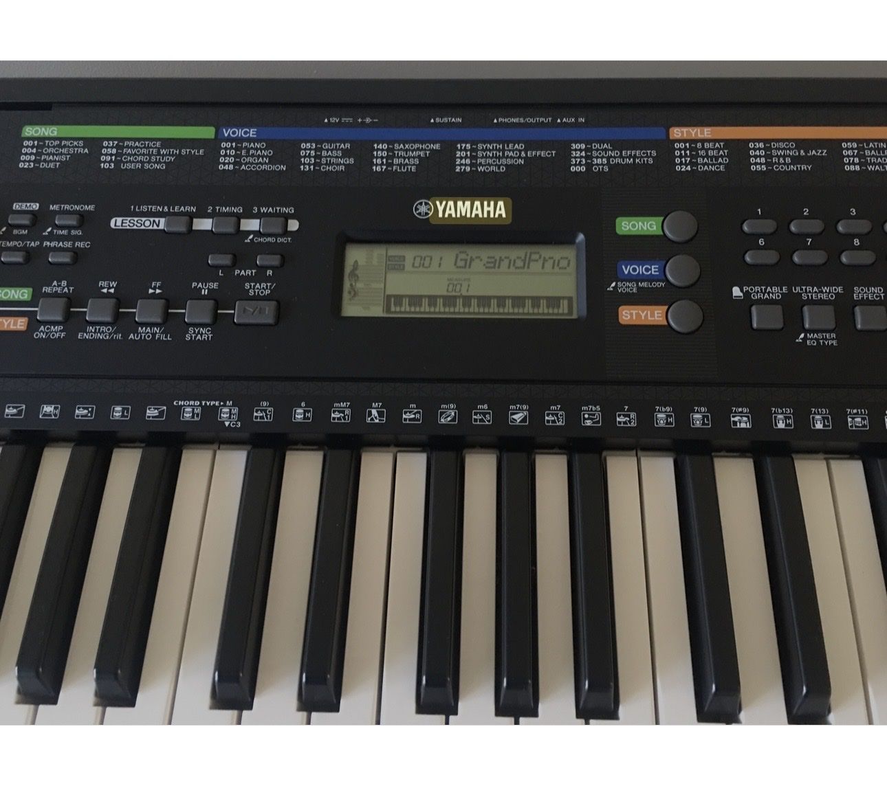 VenmoThe Yamaha PSR-E253 is a 61-key portable piano designed for beginners & intermediate, featuring 385 instrument voices, 100 accompaniment styles, and the Yamaha Education Suite (Y.E.S.) lesson function. Released around 2015, this compact, nice piano includes built-in speakers, a "Portable Grand" button, and an AUX input, though it lacks USB/MIDI connectivity.