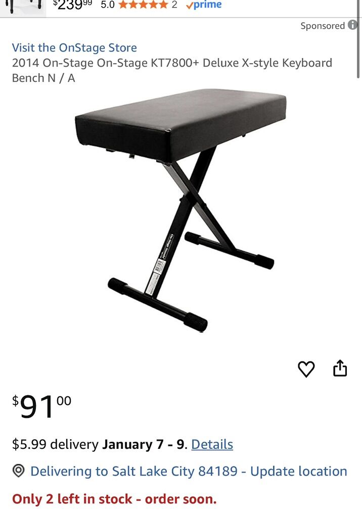 All-weldedColor: Black Powder Coat Finish Top-of-the-line folding keyboard bench Folds flat for travel