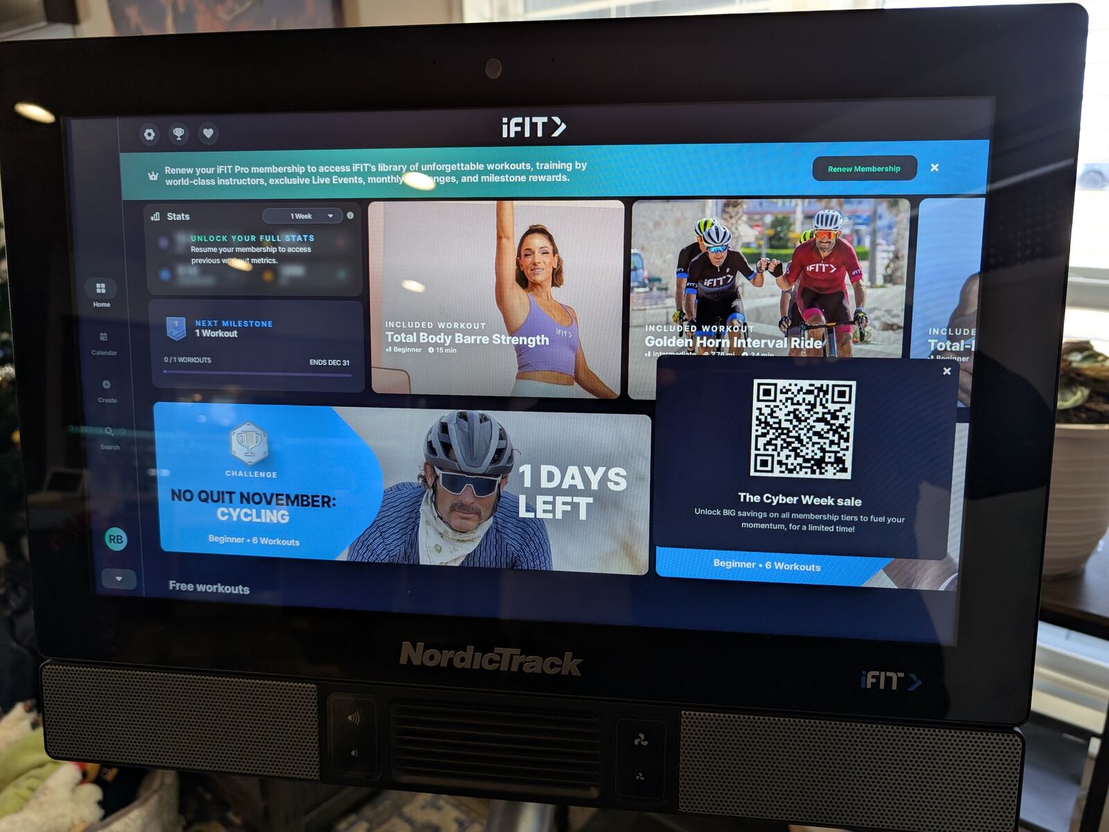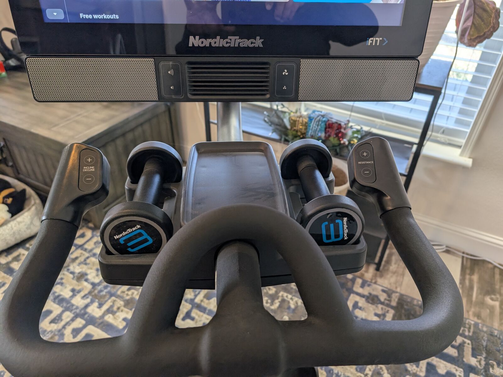 PayPalBought new from NordicTrack about 3 years ago and have used it only 6 or 7 times. Wife would rather have a treadmill so, I have to get rid of this. No scratches, looks and functionse like new. Comes with 3 lb. weights, gel seat cushion and owners manual. Unit has 3-speed fan on monitor and pretty decent speakers. Monitor swivels so you can use it for floor exercises, yoga, and other exercise classes through the iFit app when you subscribe. Paid well over $2,400 w. assembly and the extended warranty. Asking $999 OBO.