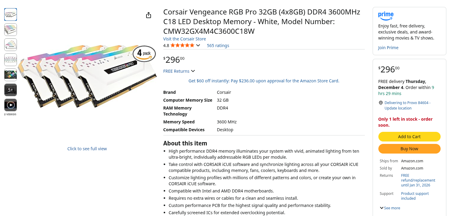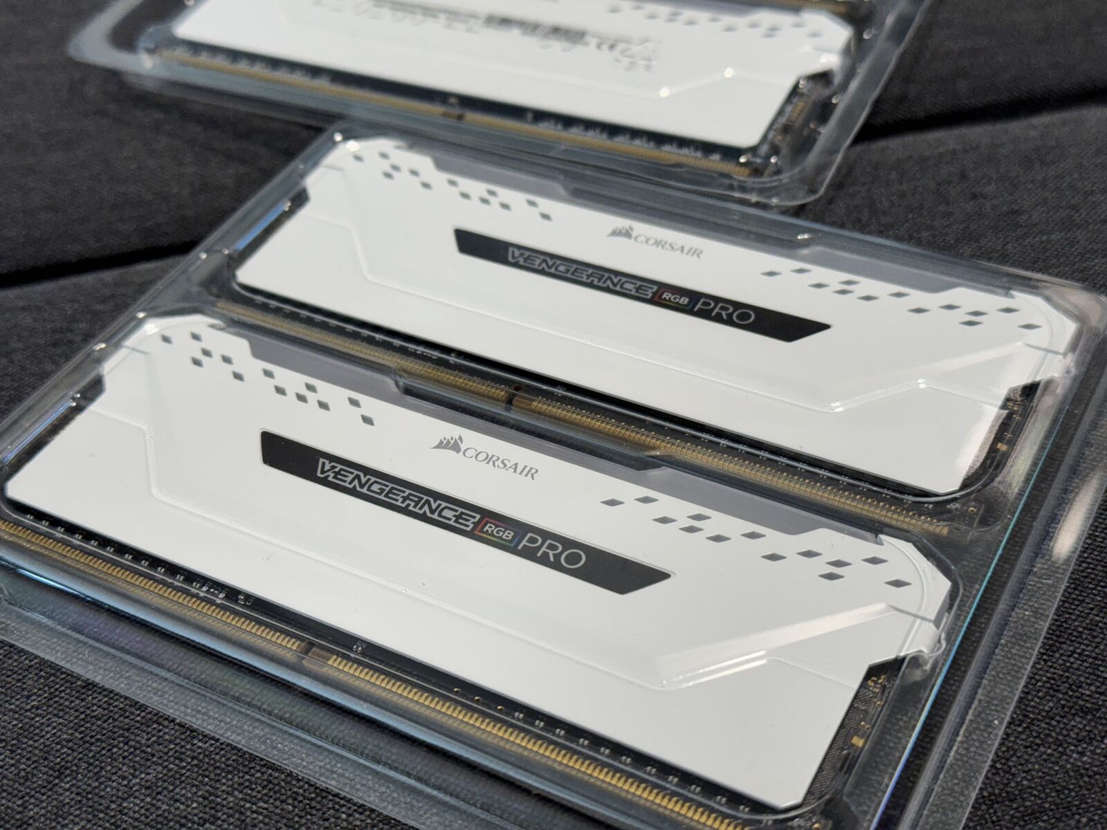 ApplePaySet of rare, white-plated Corsair Vengeance RGB RAM chips. Nothing wrong with them; just don't need them anymore. These are high-speed RAM chips with beautiful, customizable RGB lighting. Worked great on an Asrock Steel Legend motherboard.