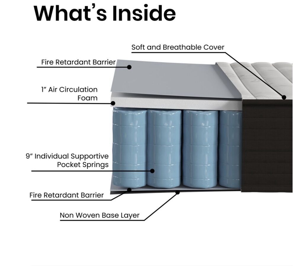 10 Hybrid Foam and Pocket Spring King Mattress in a Box Breathable Knitted Fabric Covering CertiPUR-US Certified High Density Foam Individually Wrapped Pocket Springs Fits Most Foundation or Slatted Support Bed Frames Ideal for RV's and Adjustable Bed Frames Compressed and Boxed For Easy Handling Please Allow 48-72 Hours for Complete Expansion Please Allow 48-72 Hours for Complete Expansion