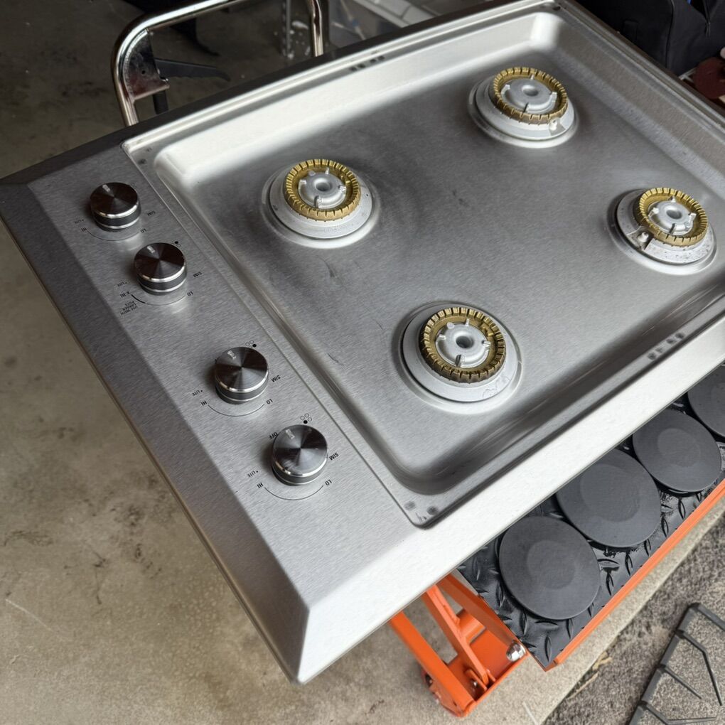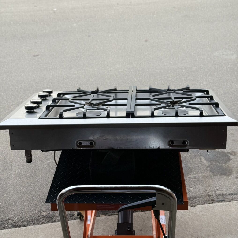 Used - 30 Inch Gas Cooktop with 4 Dual Flame Stacked Burners, Continuous Interlocking Grates, 140 Degree Simmers, Indicator Lights Embedded Knobs, and Electronic Ignition: Natural Gas ZGU384NSM2SS