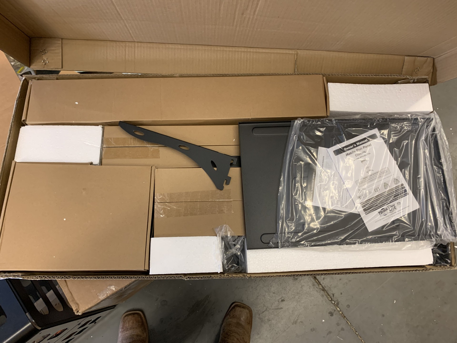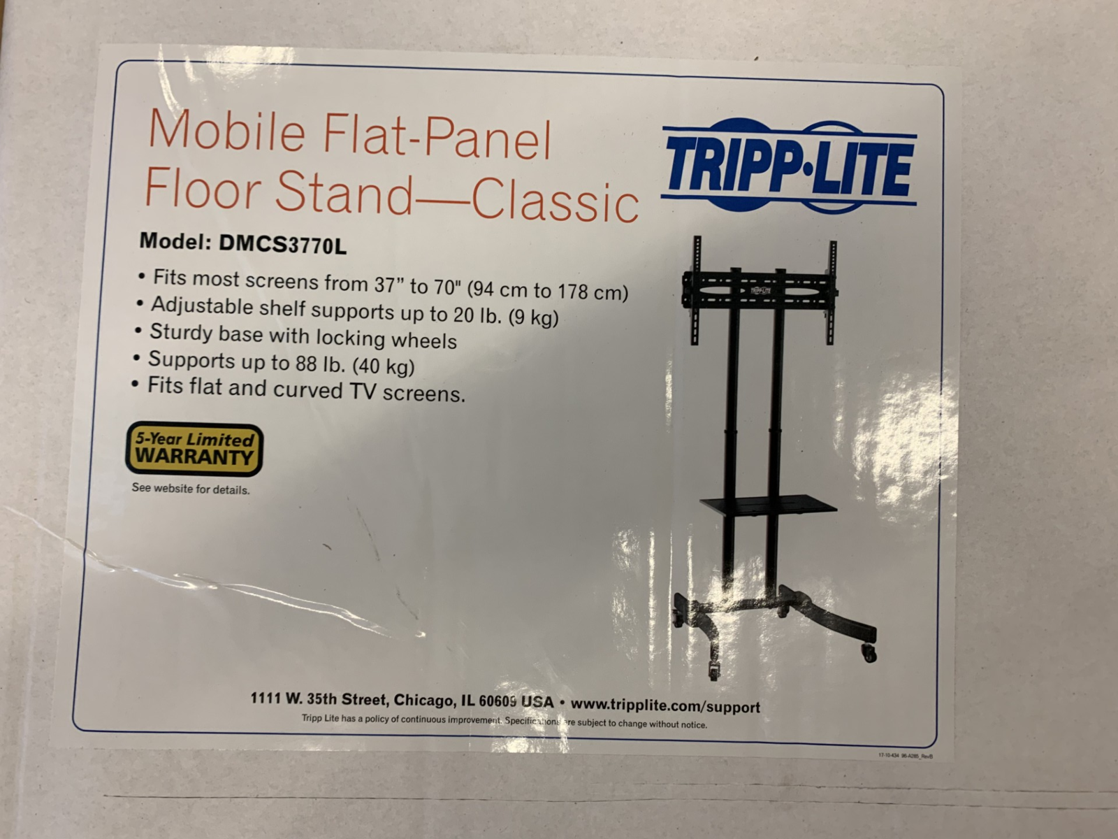 VenmoThis is a tripp lite mobile flat panel floor stand classic, capable of holding TV and monitor LCD screens from 37-70" wide. Rolling casters make it easy to move, display height and shelf are both adjustable.