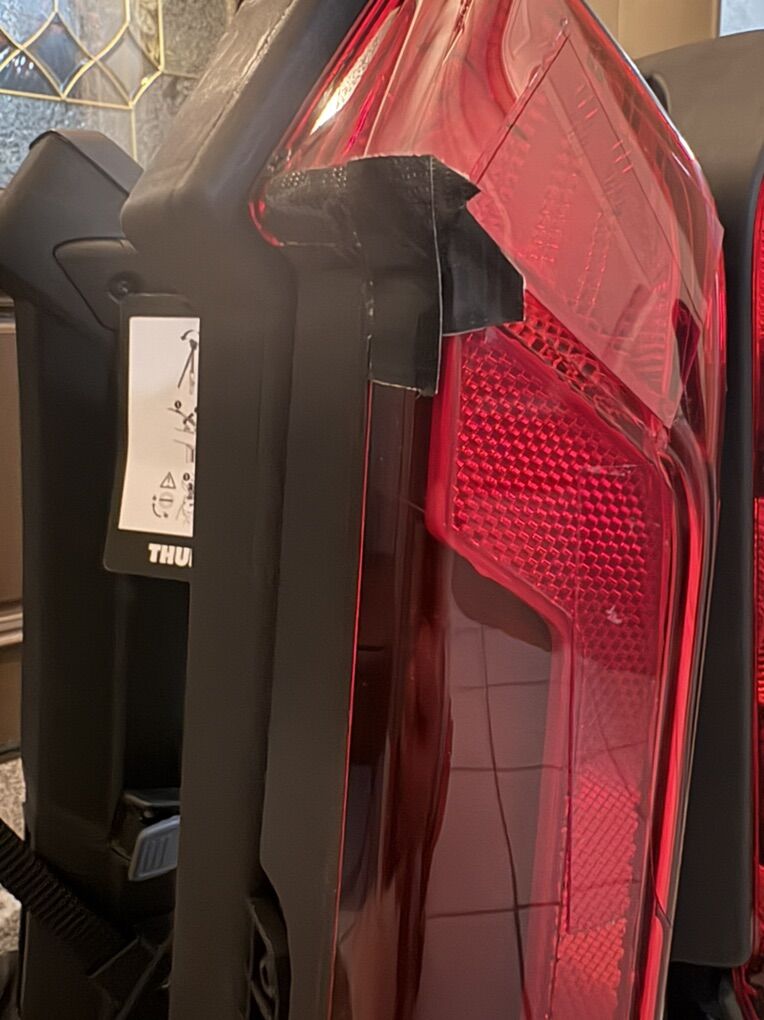 It does have a crack in one of the tail lights (left light lens) caused by shipping, but I covered it with Gorilla tape. No effect on the functionality of the rack.