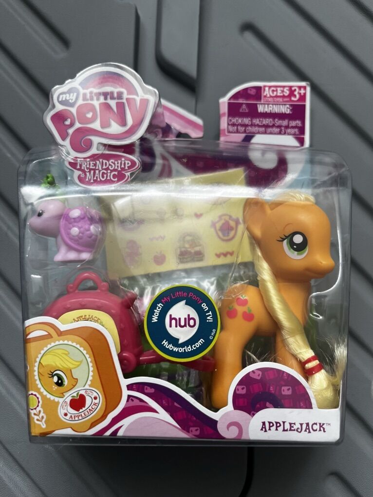 VenmoNew in box my little applejack figure. This is from the friendship is magic line and includes applejack pony figure, a small turtle companion a suitcase a ticket and stickers. This is generation 4 my little pony