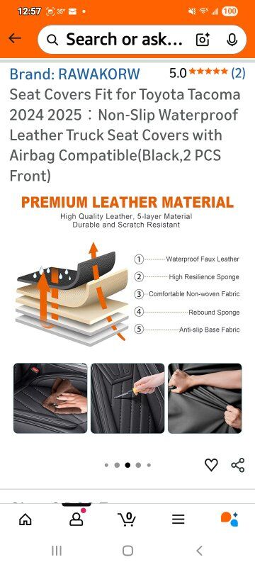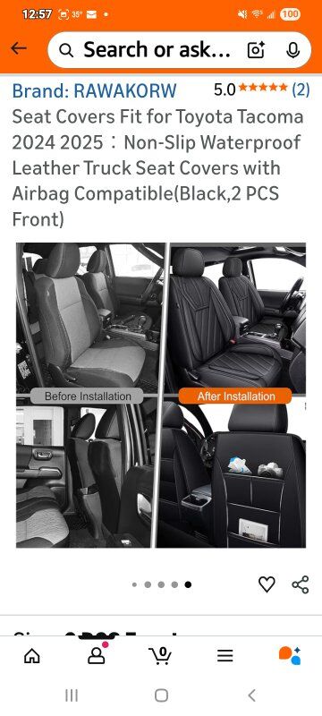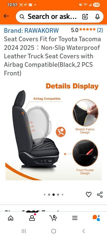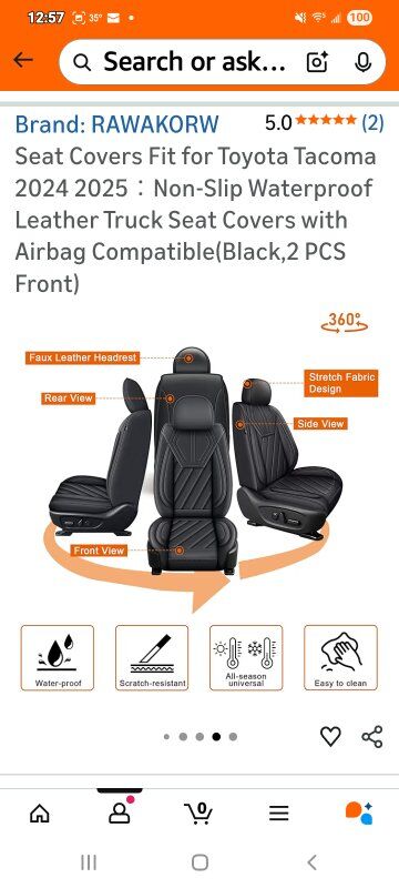 Brand-RAWAKORW Color-#101 Black Material-Faux Leather Auto Part Position-Front Manufacturer-RAWAKORW Custom Seat CoversThe car seat covers front seats are customized on Toyota Tacoma,the seat covers for trucks only fit for Toyota Tacoma 2024 2025. Do not buy it if your truck is not Toyota Tacoma. MAINTAIN FUNCTIONALITYThe seat covers for cars will not affect the original functions of the seat such as airbags,seat belts and seat adjustment. The elastic cloth design on the side of the front seat covers allows it to perfectly fit your original car seat,bringing better comfort and safety. High QualityThis automotive seat covers is made of high-quality faux leather. It is not only durable and wear-resistant,but also allows you to have a comfortable experience during use the seat covers front seats. Modern DesignOur custom fit leather seat cover feature a sleek,stylish design that adds a touch of elegance to your vehicle's seats while protecting them from stains and dust.