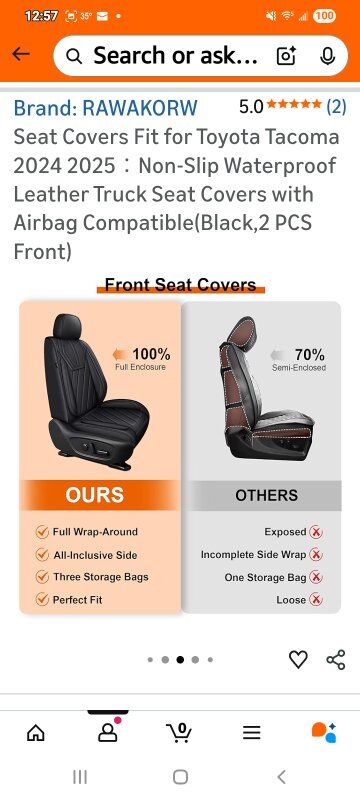 VenmoNew in Package! Toyota Tacoma Seat Covers for Years 2024-2025