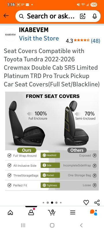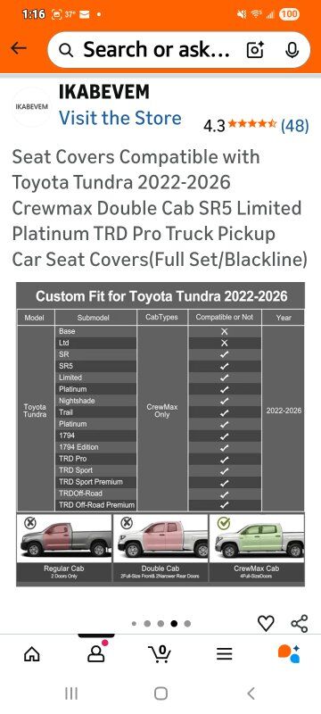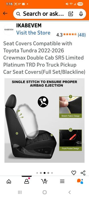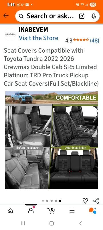 Brand-IKABEVEM Color-034# Blackline Material-Faux Leather Auto Part Position-Front Manufacturer-IKABEVEM CUSTOM FIT FOR TOYOTA TUNDRAseat covers full set 5 seats are customized designed to fit for 2022 2023 2024 2025 2026 Tundra TRD Sport TRD Pro Limited Platinum SX Package Trail Edition Tundrasine Concept 1794 Edition Crew Double Extended Cab Regular Cab, which a perfect fit and maximum comfort. UPGRADE FRONT SEAT COVERSThe front seat covers perfect fit and comes with pockets on the backside of seat and on the front edge of seat below your legs, totally 4 pockets which are easier to storage your items. HIGH QUALITYCrafted from high-quality faux leather, these car seat covers are durable and wear-resistant, easy to clean.It feels soft to the touch but also feels tough to rip apart. Also when it's very hot inside it doesn't stick to your skin. MAINTAIN FUNCTIONALITYMaintaining functionality is key, and these tacoma seat covers are designed to work seamlessly with your Tacoma's original features, including airbags, seat belts, and seat adjustments. EASY TO INSTALLInstallation is straight forward with the included installation manual. You can easily install it in 15-30 minutes by yourself. Whether you're a seasoned DIY enthusiast or tackling seat covers for the first time, you'll find the installation process hassle-free and straightforward.