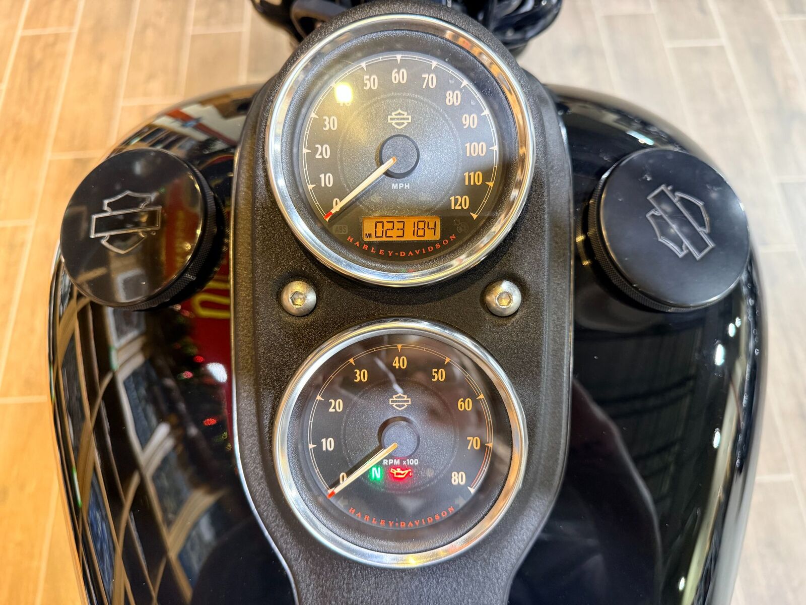 The new Low Rider S takes the factory custom genre to a raw and powerful new edge. Get behind the fixed speed screen and hang on. Rule the street. In 1977, when the first Harley-Davidson Low Rider rolled off the line, it pushed the limits of factory custom design to a place they’d never been. Now, the Low Rider S is taking the genre to a raw and powerful new edge. We mounted our Screamin’ Eagle Twin Cam 110 engine in a nimble Dyna chassis and installed a heavy breather intake. We added tall bars, mid-mount controls and a new seat that position arms up and out and feet square, along with premium front and rear suspension, giving the rider everything required to put the massive power to good use. We stripped down and blacked-out the rest with gold accents like the tank badge and pinstripe and matching split five-spoke cast aluminum wheels. Get behind the fixed speed screen and hang on.