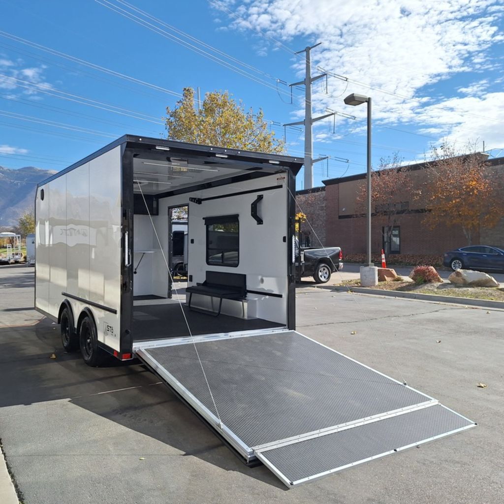 LIMITED TIME $256 A MONTH WITH ZERO DOWN WITH OUR SPECIAL LOCAL CREDIT UNION PARTNER!!! NO PRE-PAYMENT PENALTIES!!! ALL ALUMINUM ATC TOY HAULER!!! UTV/ATV PKG!!! TORSION AXLES!!! 16 FOOT GARAGE!!! NEW TOY HAULER TRAVEL TRAILER MODEL!!! GO WHERE OTHERS ONLY DREAM!!! HEATING AND A/C!!! 87 Inch Rear Entry Height/90 INCH INTERIOR HEIGHT!!!INTRODUCING THE NEW MODEL RELEASE, NEVER SEEN BEFORE 8.5 WIDE ALL ALUMINUM ATC STO 450 TOY HAULER TRAVEL TRAILER!!! LIFE TRAC!!! YOU HAVE TO COME SEE THE NICEST, HIGHEST QUALITY BUILT TRAILER AVAILABLE IN THE COUNTRY!!!