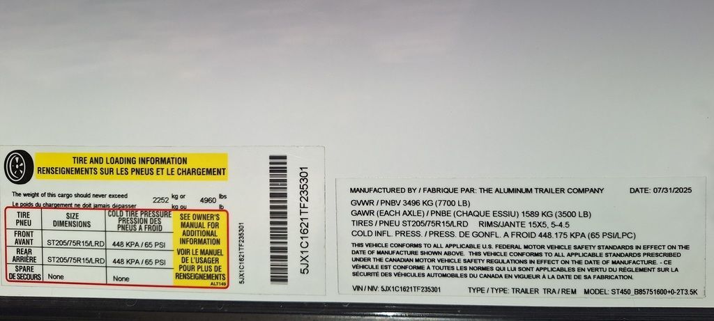 ALUMINUM RIMS WITH ST205-75R15 LRD TIRES