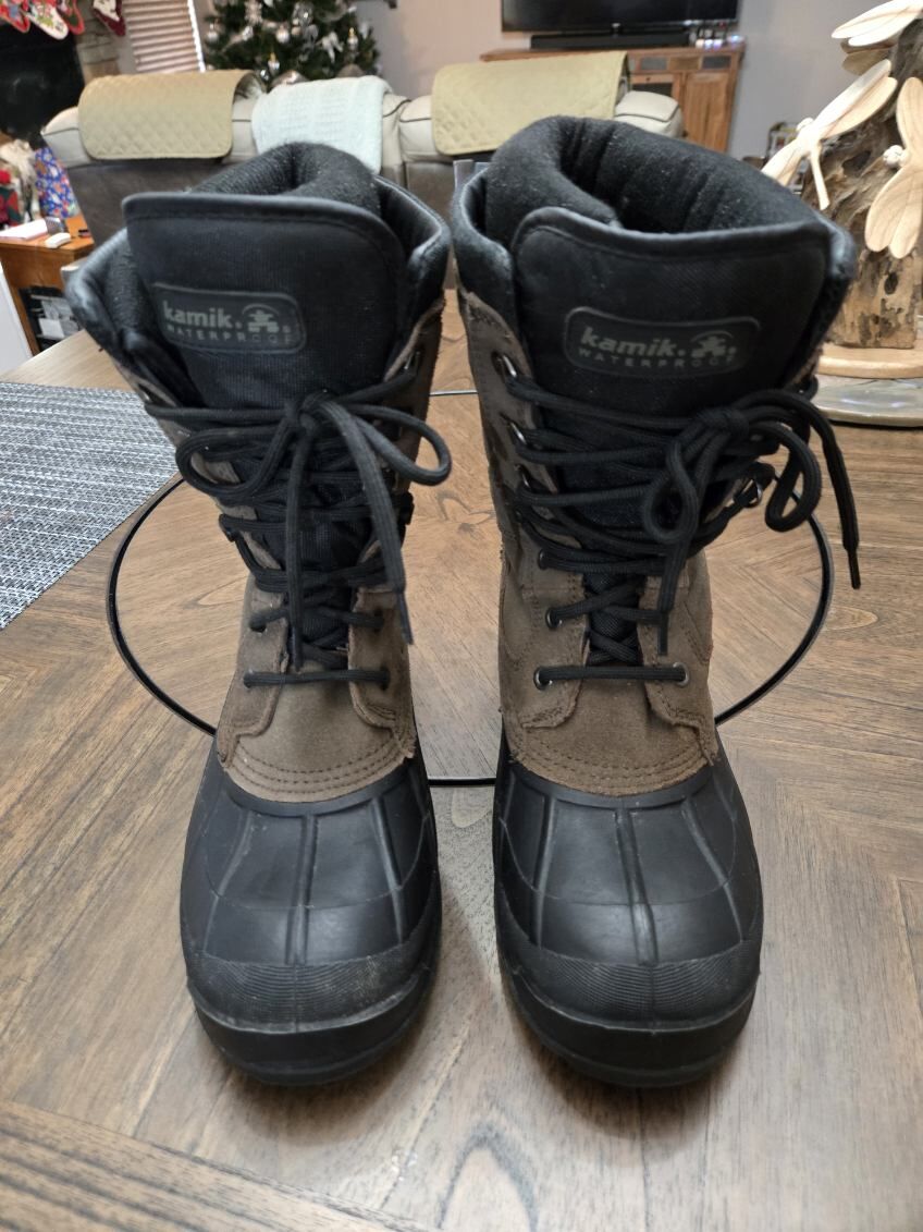 VenmoVery nice pair of winter weather Kamik boots. Kamik makes some of the best winter boots in the world. These are in great shape with no issues. Good soles, insoles and strings. They have Thinsulate insulation to keep your feet nice and warm. Great for hiking, shoveling snow, snowmobiling, snowshoeing, or any outside activity.They are size 10 mens or size 11 womens.