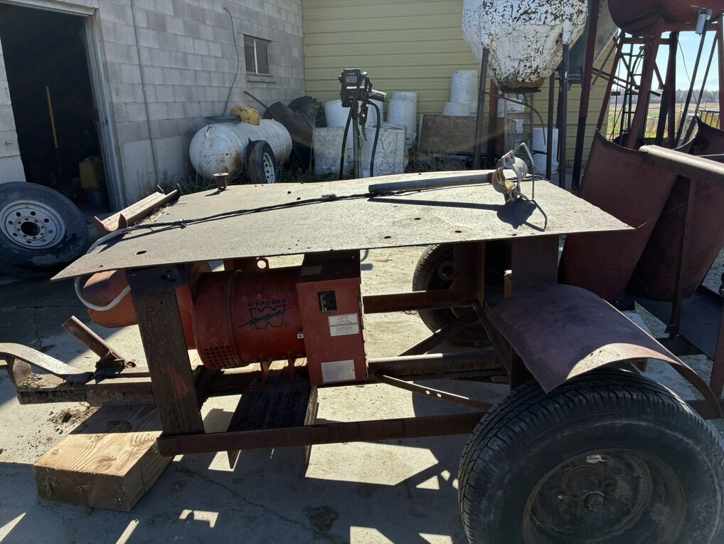 VenmoWinco 30 kw 3 phase 540 pto driven generator mounted on a repair trailer with two tank holders for a torch and a place to mount a welder and anvil with working table all mounted solid no suspension good tires