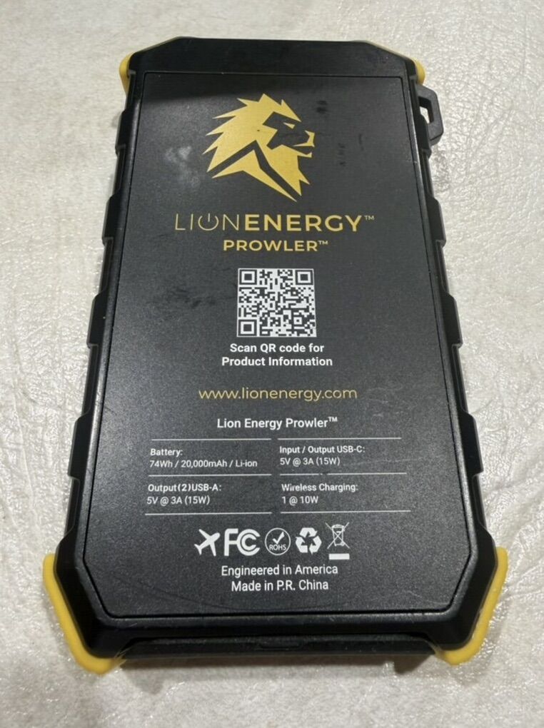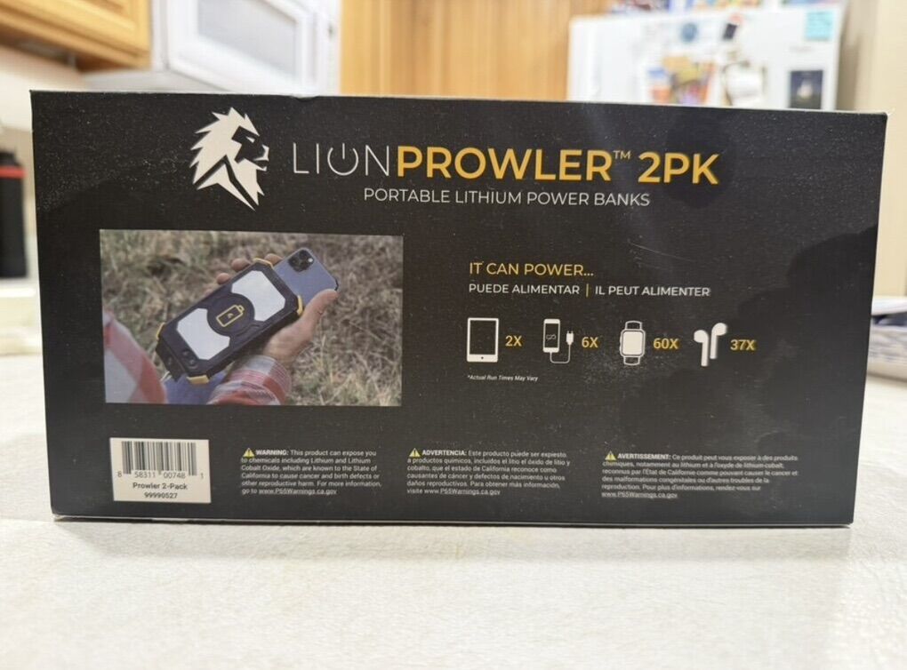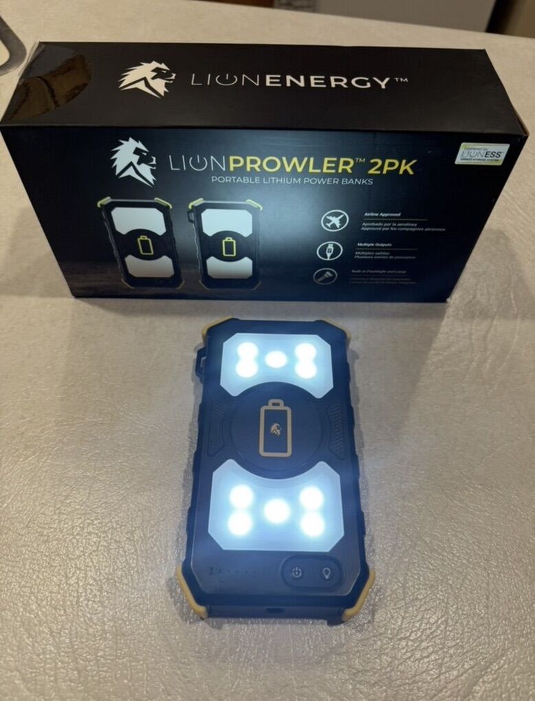 Lion Prowler Battery Power Banks with built in flashlights Original packaging! One has been lightly used and the other is still new in the box! 74Wh/20,000mAh/Li-on