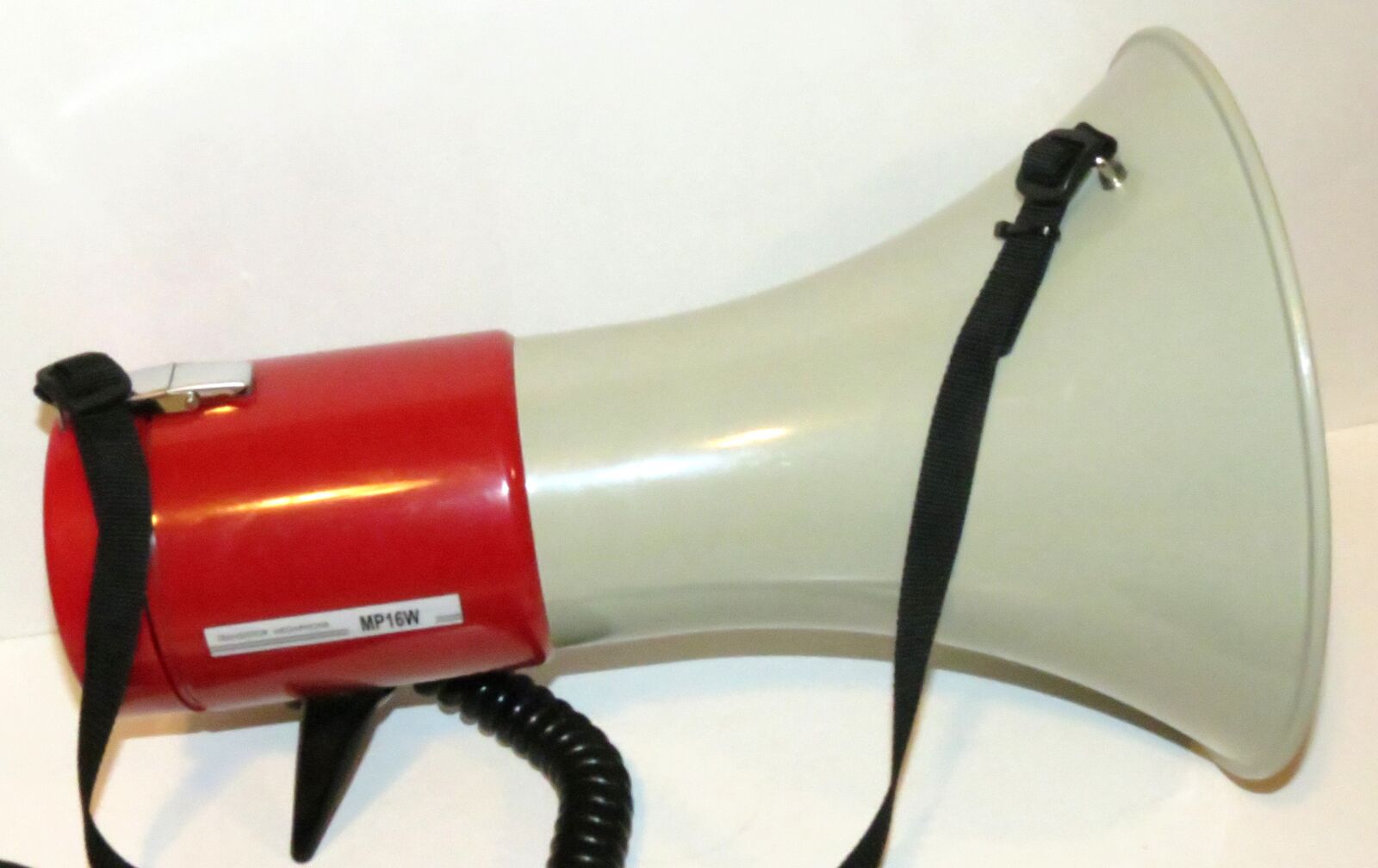 VenmoLight use only, great shape! Comes with 8 C batteries, ready to go. Model MP16W. **************************************** About this item: POWERFUL MEGAPHONE: This professional megaphone by Champion Sports is a strong, effective amplification device that has power range from 16 to 30 watts - allowing it to reach up to 1200 yards! Your voice will be clear and understood. CONVENIENT AND PORTABLE: Our bullhorn comes with a handheld microphone and comfortable shoulder strap for hands-free holding. The loudspeaker is lightweight and easy to take to events and gatherings for immediate volume. EMERGENCY SIREN: This high-quality megaphone is made with a durable siren that will instantly get attention. It blares loudly to quickly get attention during emergencies, or while in the middle of a noisy crowd. EASY TO USE: This megaphone speaker with siren features adjustable volume control that allows you to change the volume for indoor or outdoor use. It has a user-friendly design that adjusts the power of your voice with the push of a button. GREAT FOR EVENTS: Our megaphone is great for event management, festivals, carnivals, and many sporting competitions. It will get attention on a boat, during school assemblies, neighborhood fairs, and ralliess.