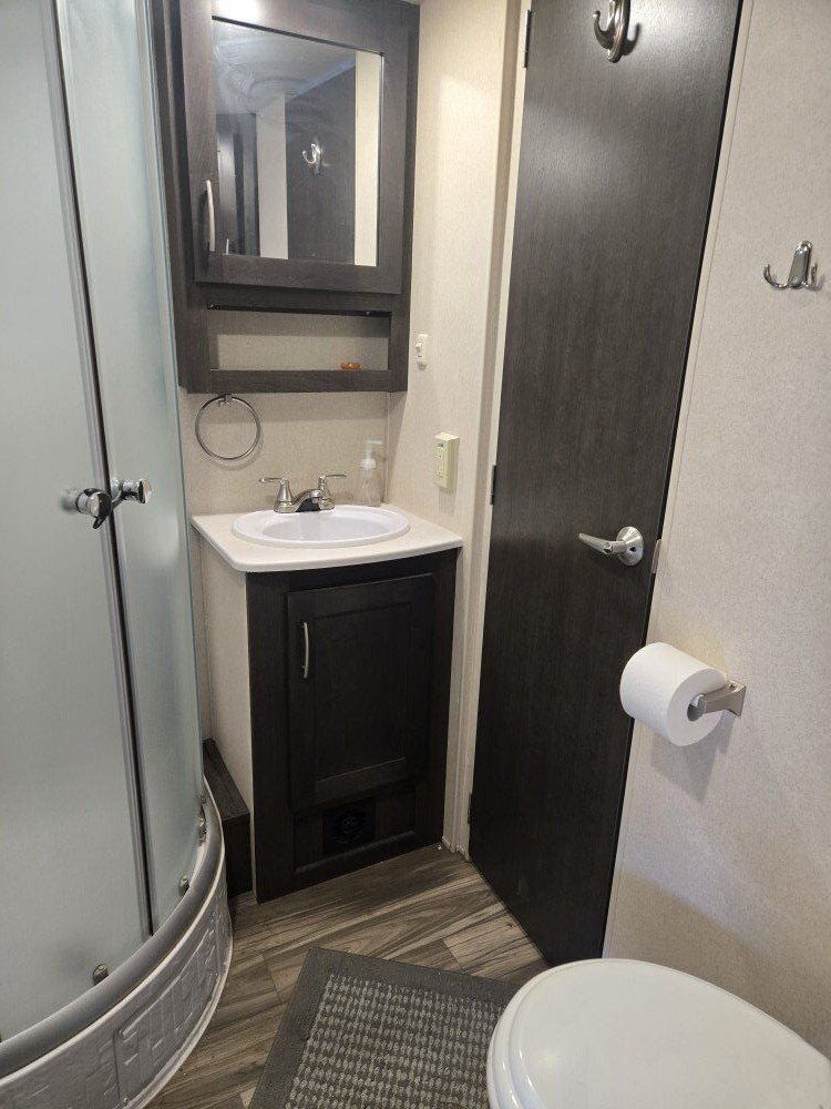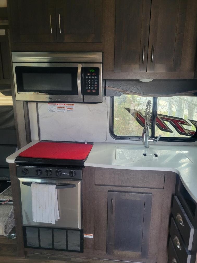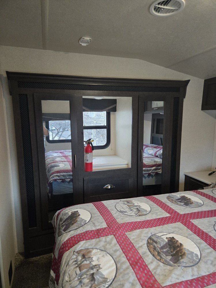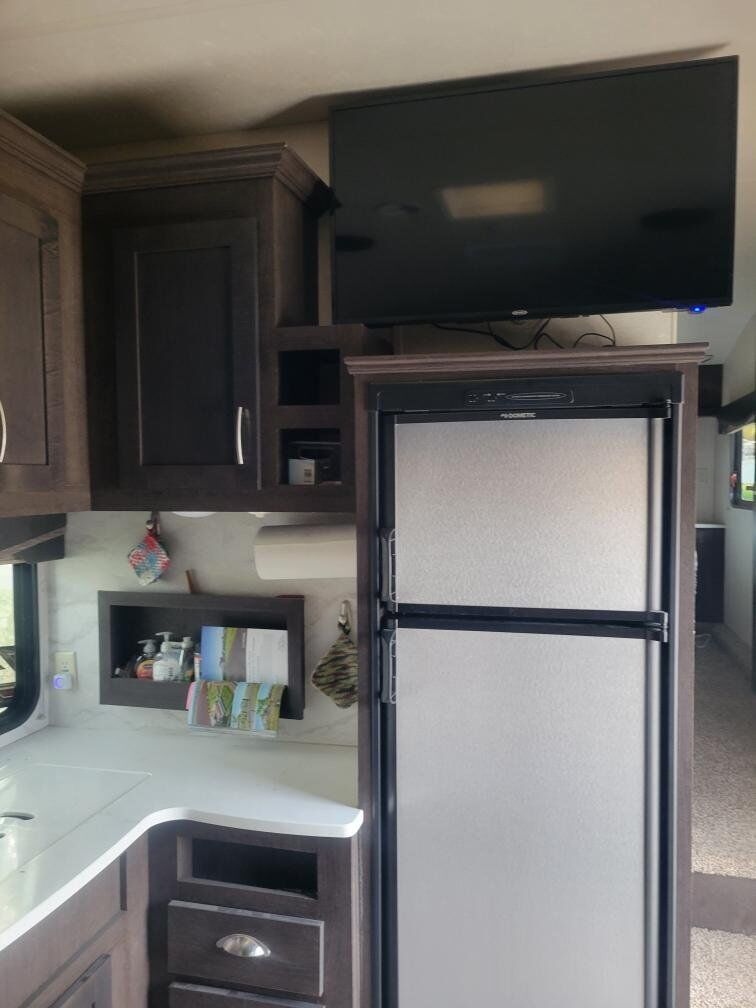 This M-2816G has a built-in generator with low miles, solar panels, new tires, and the Arctic package. The length is 28ft with a 16ft garage, it has two slides, gas & electric 10-gallon
