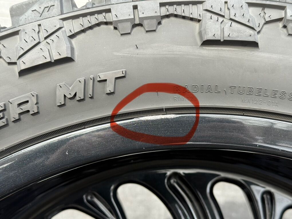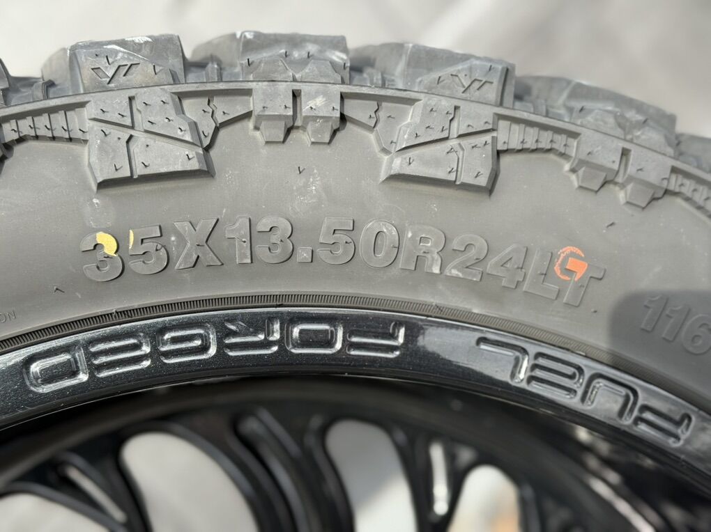Tires are like new and only have 7,000 miles on them. Venom 35X13.50R24. One wheel has a small curb rash scratch, besides that they are in awesome condition.