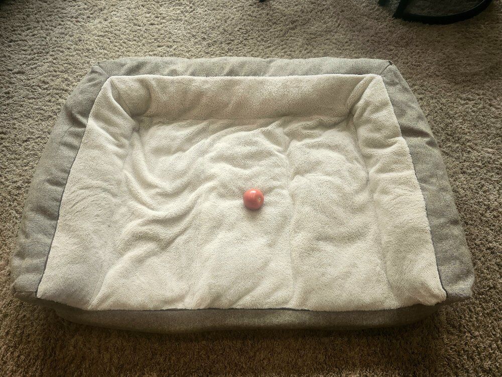 VenmoTomato for size comparison. Original padding was lost and replaced with memory foam and stuffing. cover is no longer removable. local pickup only cash or venmo