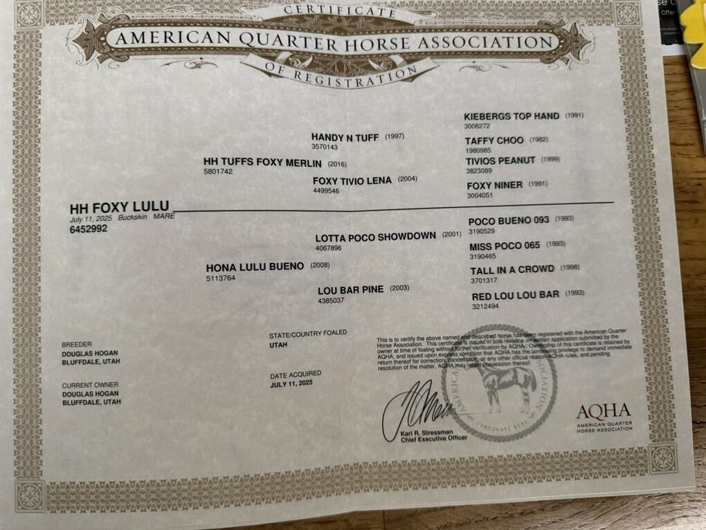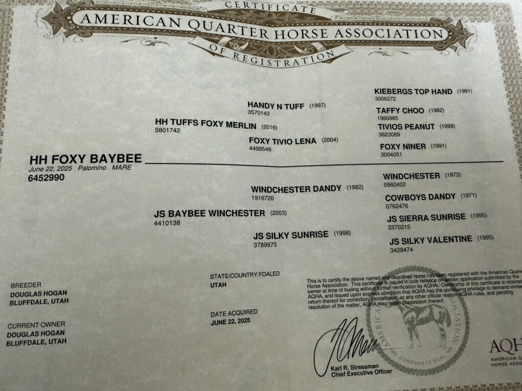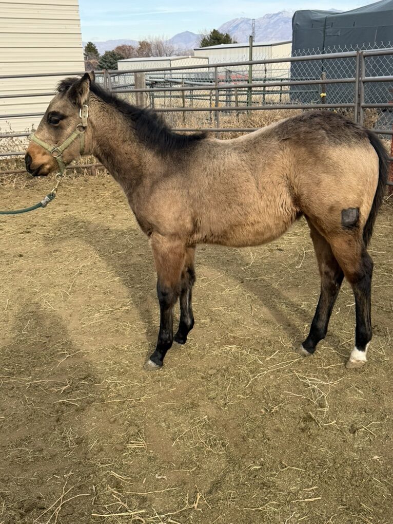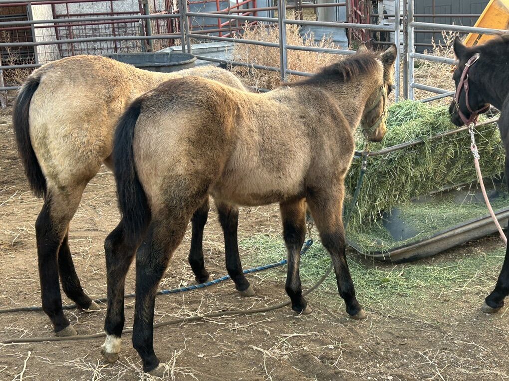 Hangin H Quarter Horses is proud to offer a few select AQHA yearlings this year. All are AQHA registered with papers in hand. Buckskin filly. $3500. Palomino filly. $3500. Pedigrees include Mr Gunsmoke, King Fritz. Doc o Lena. Hancock. Driftwood. Mr San peppy. Winchester. Tee J willow jack. Poco Bueno. Showdown pine. Docs oak. Started halter training. Gentle and friendly. Will come with brand inspection. Text 801-631-6085 for more info