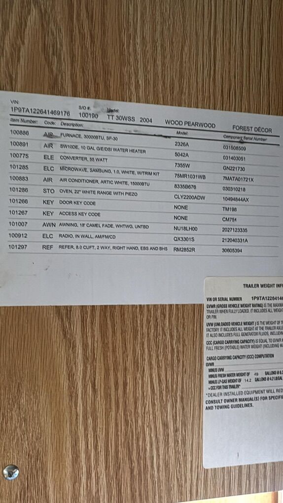 ApplePay2004 Potomac trailer 5,000 Everything works Electric tounge Jack Winterized every year. Needs new tires Needs new Batteries. Other than that Its in great shape for the year has some cosmetic damage but the integrity of the camper is in great shape. Message or call me for more info 435-724-1075 VIN 1P9TA122641469176 Length 32ft If you want a BT report I have one from been verified If you want a different one it will be at your cost.