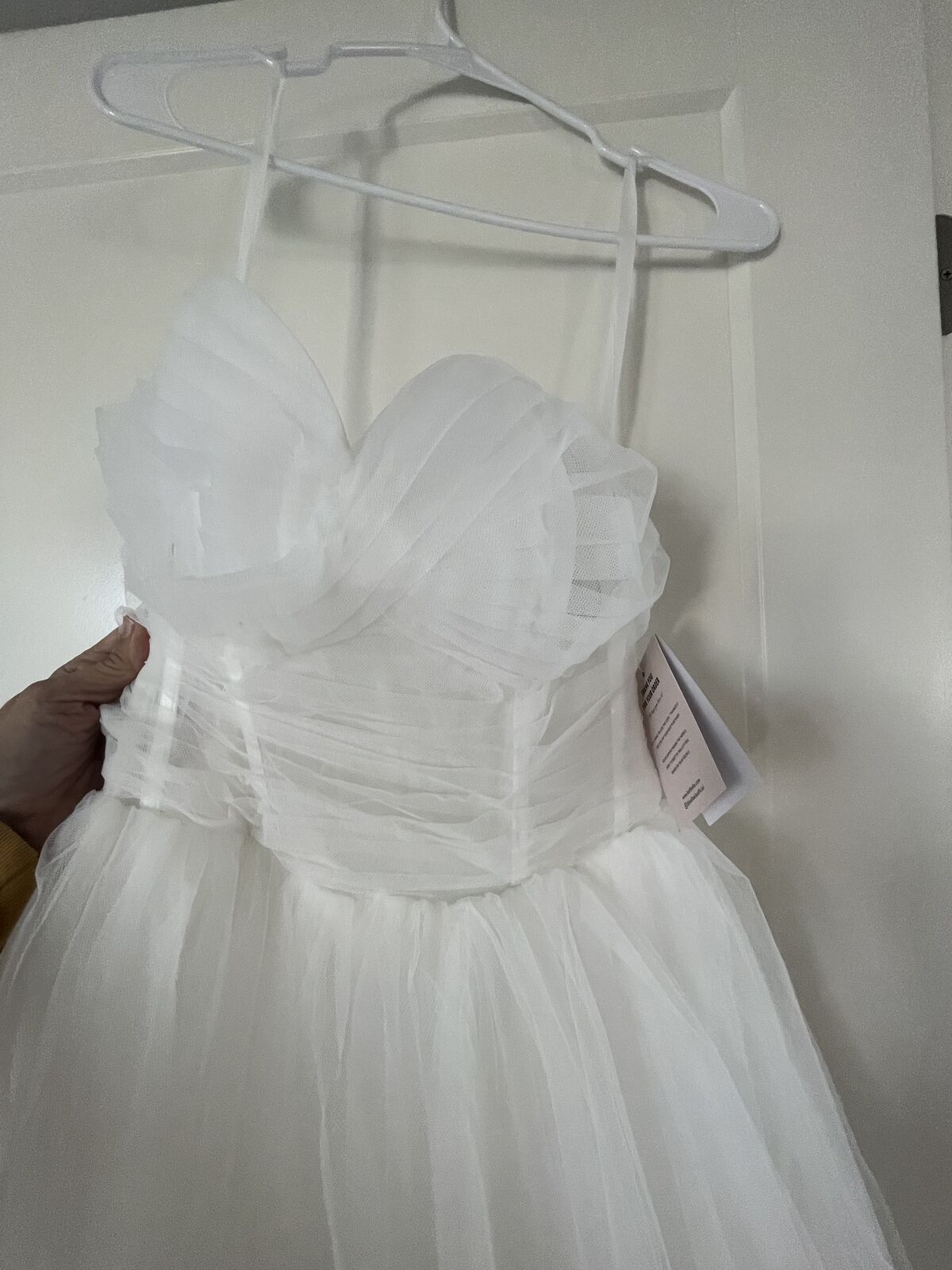 ZelleIvory wedding dress, size 8 (formal wear size 6) tulle material with zipper back. Never worn.