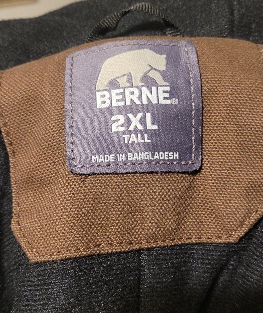 Berne WorkWear Men's SZ 2XL Tall Brown Hooded Warm Jacket Winter WorkCoat Has a Mountainland logo Never worn