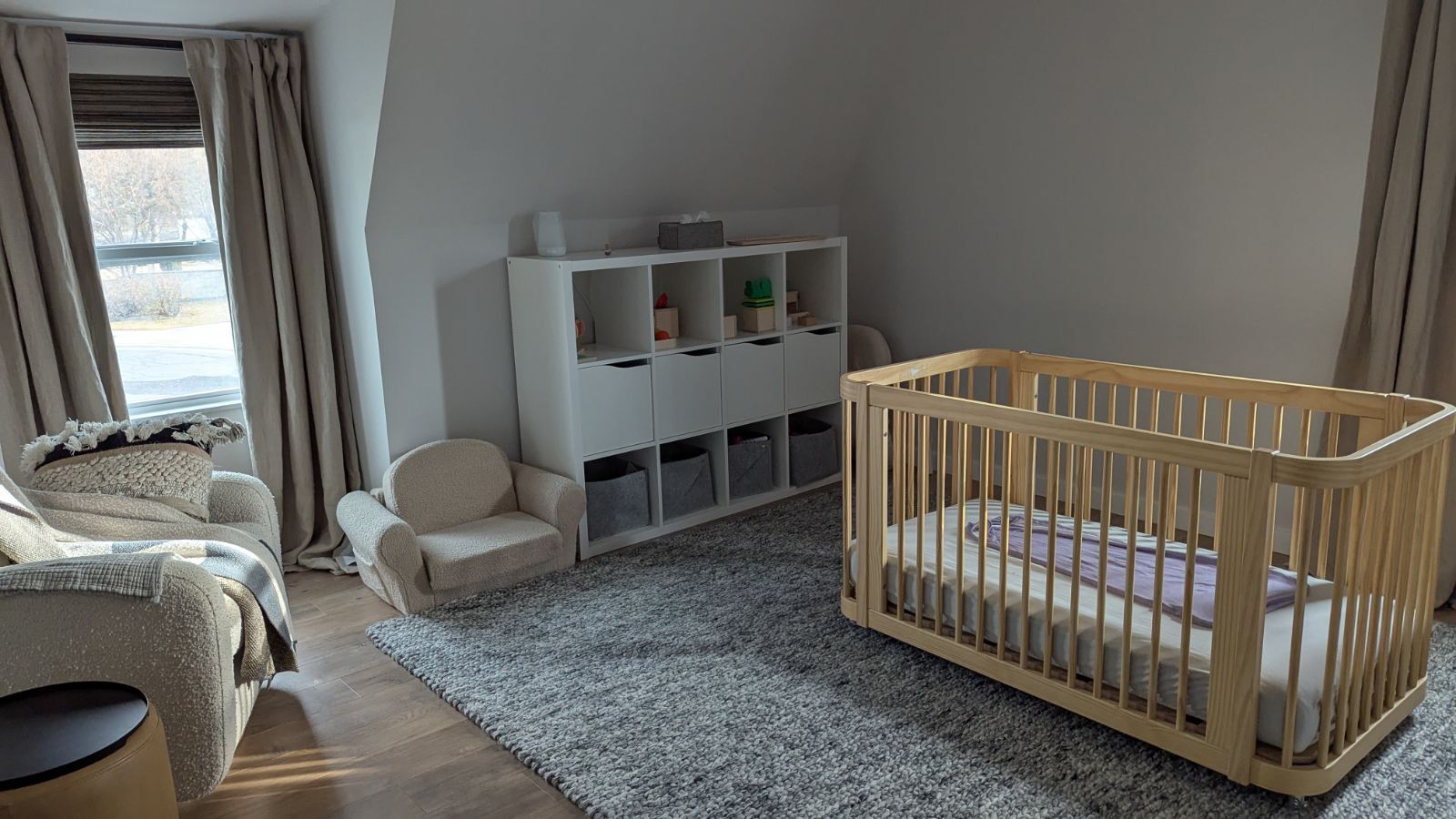 VenmoPim Pim Rug in the color Silver Grey (see link below). We had this rug in a nursery for a year. Professionally cleaned before we rolled it up Comes with a rug pad. https://www.bludot.com/products/pim-pim-rug?variant=44723230113971
