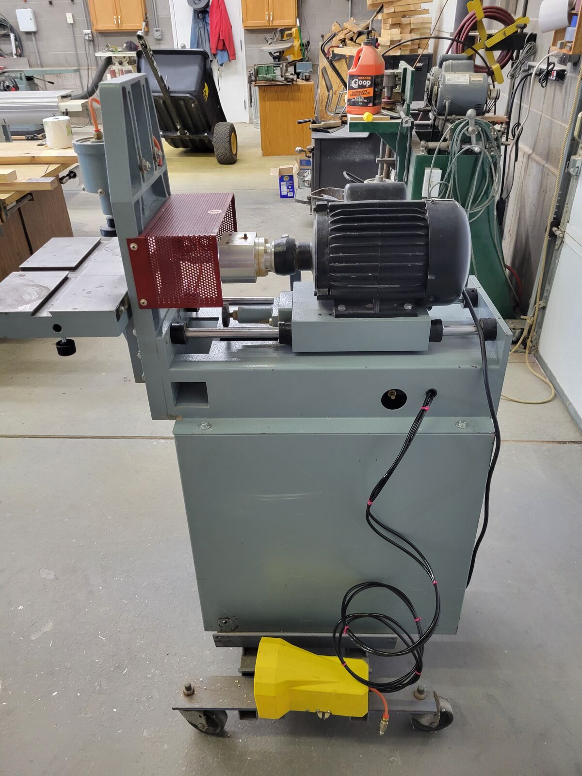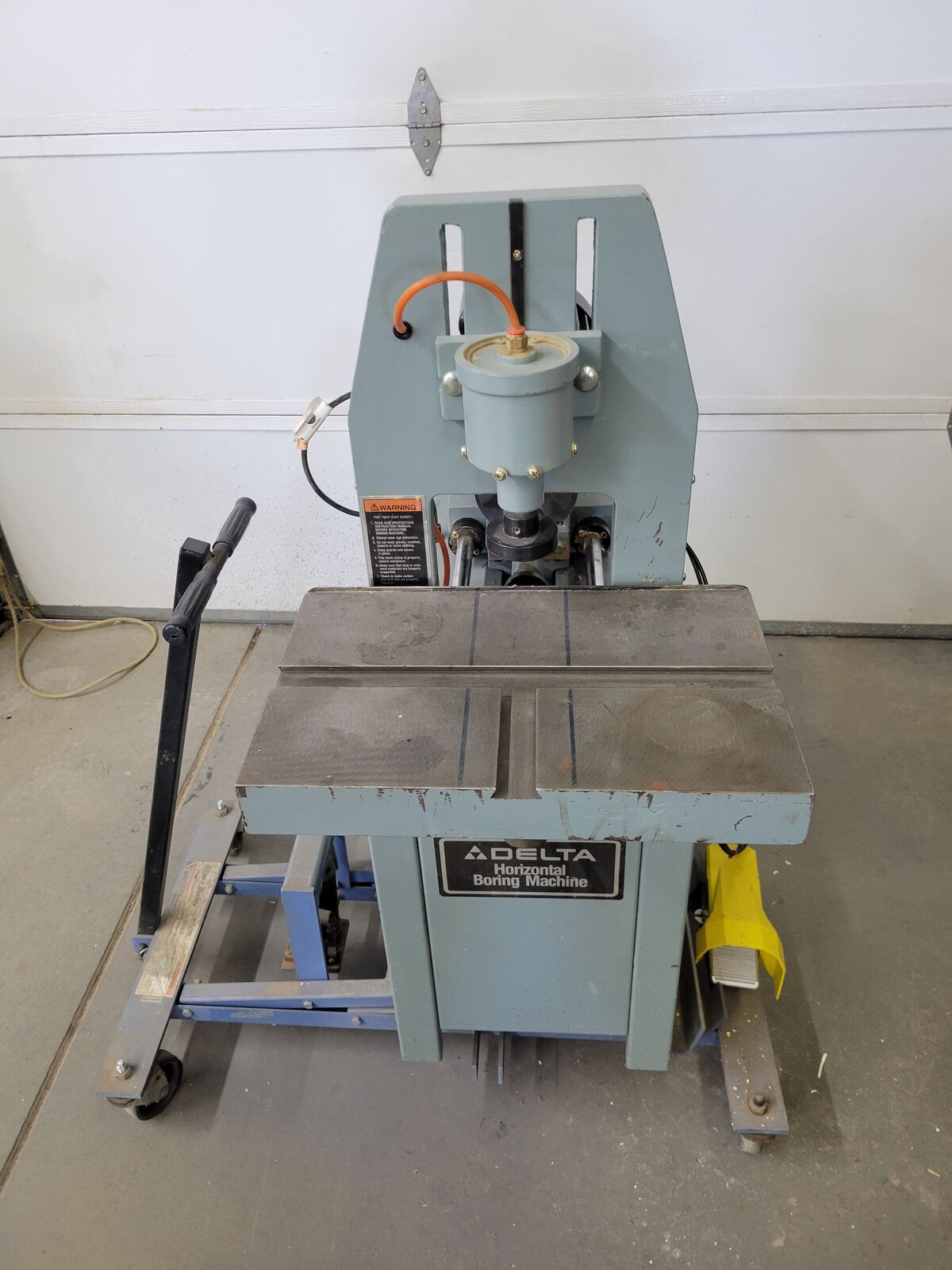 This machine is in excellent condition and everything works as it should. It is both air and motorpowered. You simply press the foot pedal, and an air clamp holds the wood in place, and the twin 3/8 drill bits make 2 perfect dowel holes. We use these to make high end cabinet frames or door frames where alignment is critical . Also, many people use this for boring the hole in the back of the drawer for the soft close drawer glides. The motor is a 1hp. 120 volt single phase. It is in as close to new condition that you could find used. Feel free to call with any questions. Alternate phone # 435-681-0297