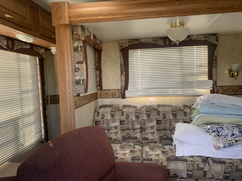 Largest bumper pull you can get! Well maintained 2006 feather lite Jayco and everything works as should always has been serviced and winterized from dealer. 28’ with living/dining room power slide. power jack, batteries new less than 6 months new, new faucets and sinks, water heater and hot stick on demand water. New water pump less than 2 years ago, tires lots of tread no damage. This trailer is at Top IT in Springville to be viewed during their business hours. Any questions please mess. 7100.00 need gone asap moving can’t take it with me.