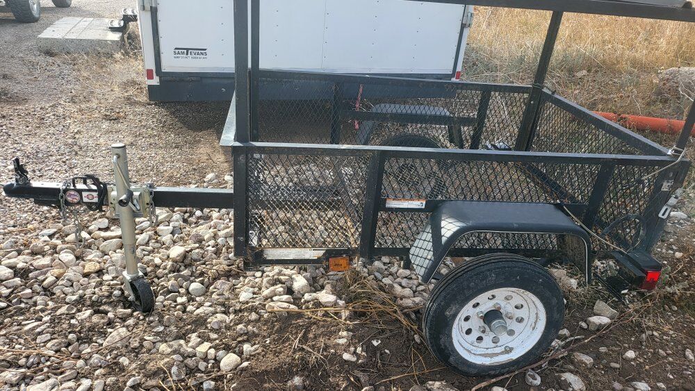 Utility Trailer. We used it to haul two 100lb propane tanks for refills and it was perfect! Previous owner used it to haul camping gear. Lights work. Tailgate could use new latches, but buggy cords work just as well. Hitch included.