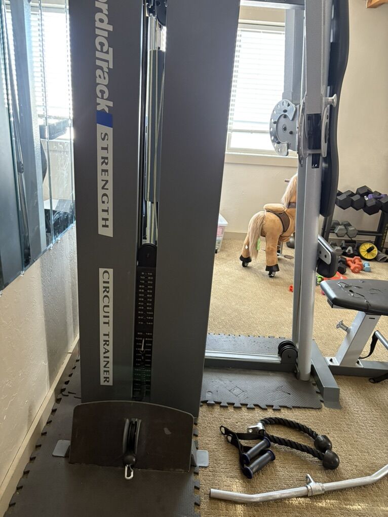 Nordictrack strength circuit training machine. Includes all the attachments. The seat is ripped but other than that machine works great! It is very heavy. You will need friends to help you disassemble and haul. We are moving some things around and no longer need it.
