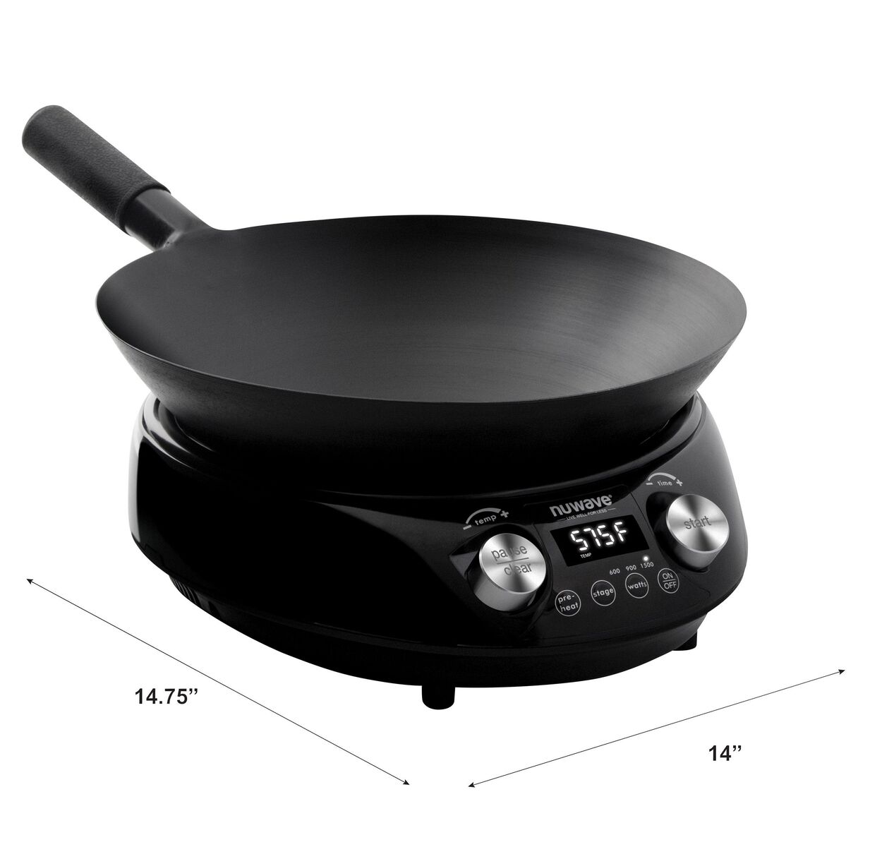 The Nuwave Induction Hot Wok is designed with advanced induction technology which safely heats the wok without any open flames or hot coils, letting you enjoy homemade fried rice in as little as 2 minutes. The secret is in the lightweight, yet sturdy carbon steel wok, which is custom-made specifically for the induction base, ensuring total coverage in the induction base for fast, even heating. With a 4-quart capacity and an included frying rack and lid, you can stir-fry, sauté, sear, steam and even slow cook, all in one convenient machine. And with built-in wattage control, advanced stage cooking and preheat features, as well as precise temperature control up to 575°F, this wok can do it all.