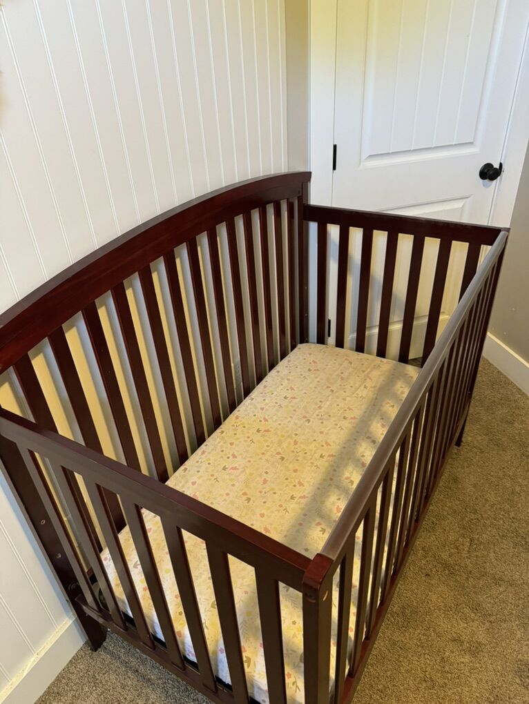 This was a great crib. Our kids just outgrew it. It come with the attachments to convert it to a toddler bed. Also includes mattress, mattress protector and sheet. Call or text with questions.