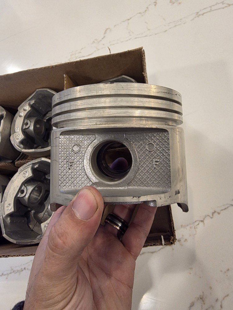 Purchased these to go on my 440, but it turns out my engine needed to go 60 over. They were listed on eBay as NOS 30 over by Midwest Classic Auto Parts and never ran and I paid $467 plus tax for them, but I can't find any casting numbers for them. Based off the design, they appear to be Enginetech or Kanter Auto pistons, but could very well be NOS. Very clean cast pistons. Just the heads and wrist pins, no connecting rods to go with them.