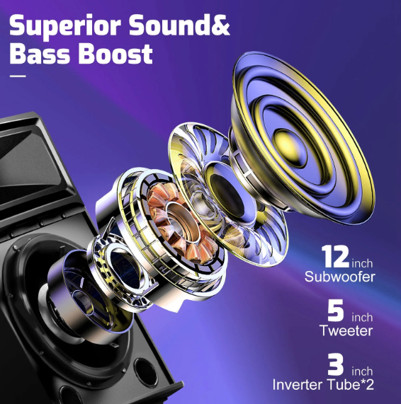 Versatile Inputs: Supports REC/AUX/USB/TF/FM radio for various audio sources.