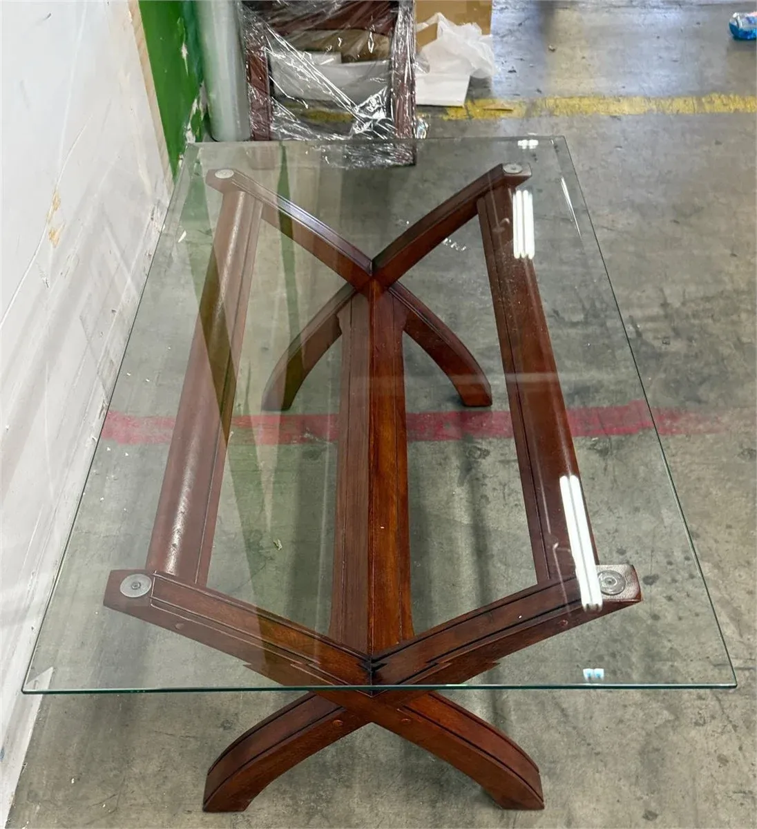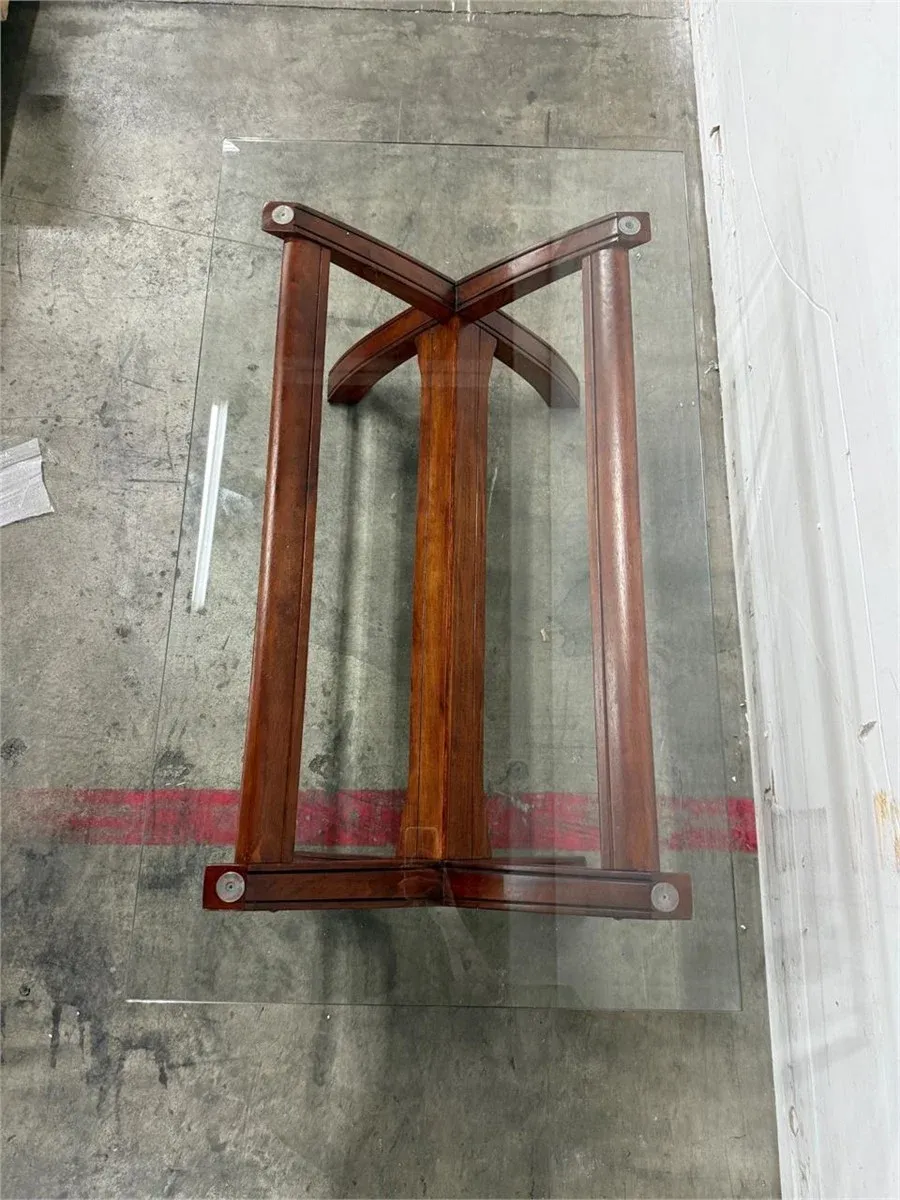 PayPalBrand New, Fully assembled. Glass top still in the box Retailer's Price: $250 My Price: $70 Retailer's description: Brand Royal Pacific This elegant table features a solid wood construction with a stylish X-frame design, providing both stability and a modern aesthetic. The table is topped with a clear glass surface, allowing for a light and airy feel in any space. Measuring 48 inches wide, 28 inches deep, and 20 inches tall, it is perfect for casual entertaining. The combination of wood and glass makes it a versatile addition to various decor styles, from contemporary to traditional. Ideal for small spaces or as a statement piece in larger areas. Would pair very well with modern or traditional chairs. Overall Dimensions: Width: 48 inches, Height: 20 inches, Depth: 28 inches Lot# 374 258m 114t 09272025 2625 2625 3725