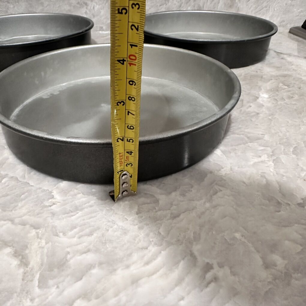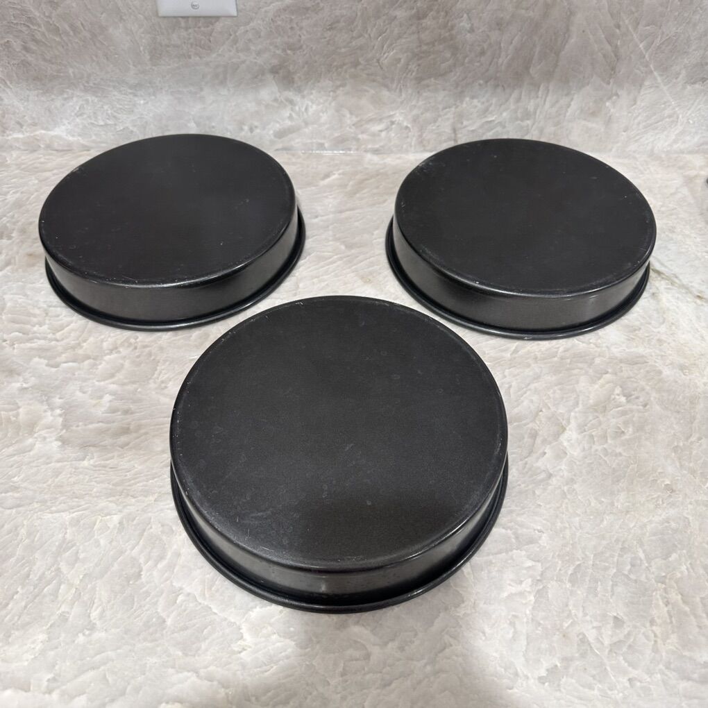VenmoHeavy Gauge Classic Non Stick Cake Pans Set of 3 Restaurant grade Good condition Some have small dents but doesn’t affect the use of it See pictures for size