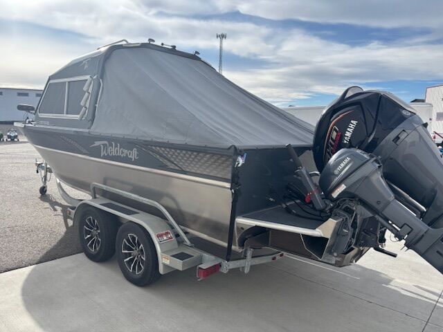 2025 21 foot Weldcraft, 200 yamaha motor with low hours 50 and 9.9 kicker motor , 3 fish finders, bow mount trolling motor, on board charger, livescope, downrigger stern curtain windsheild cover and lots more