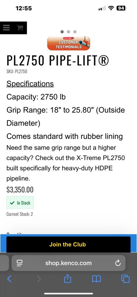 VenmoKenco pipe lifter PL 2750 like new condition