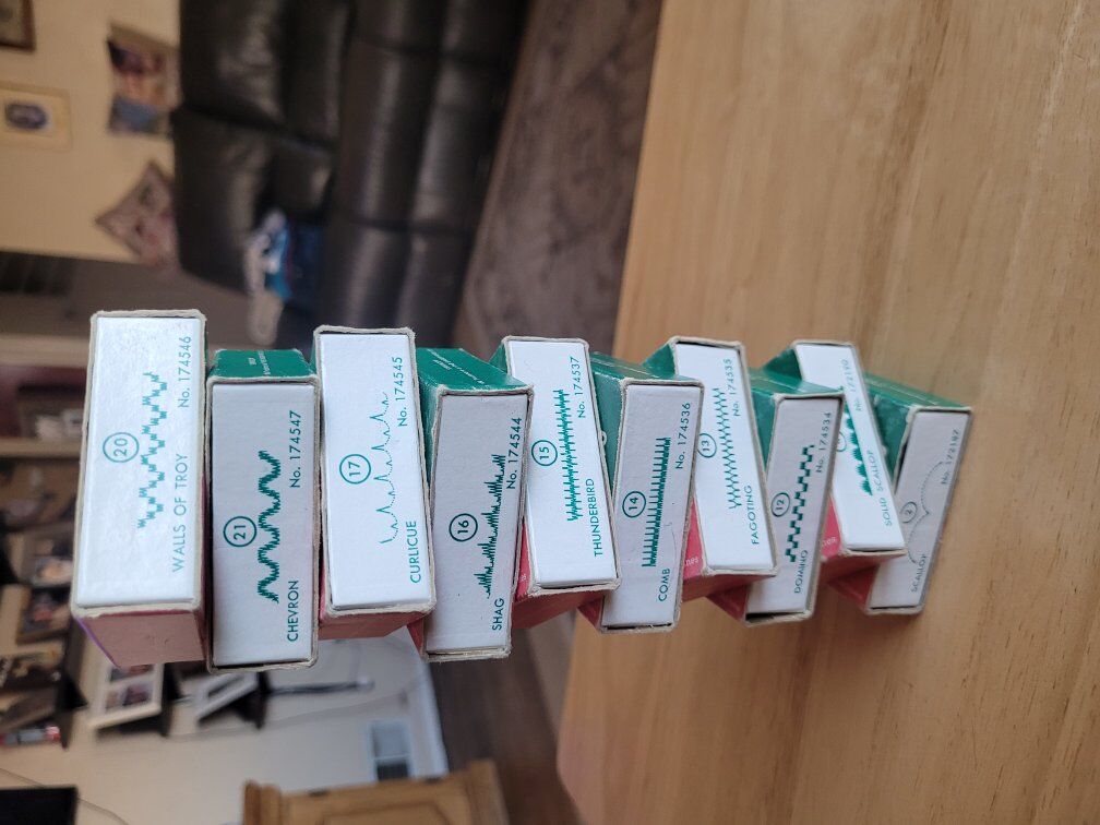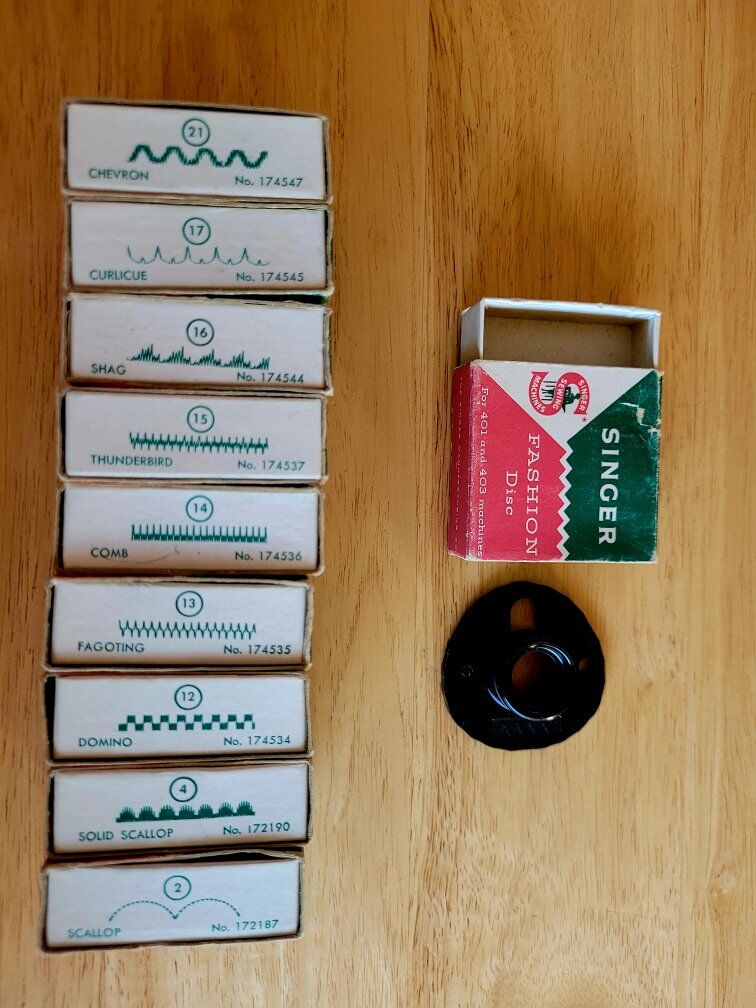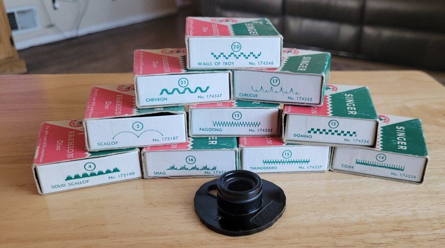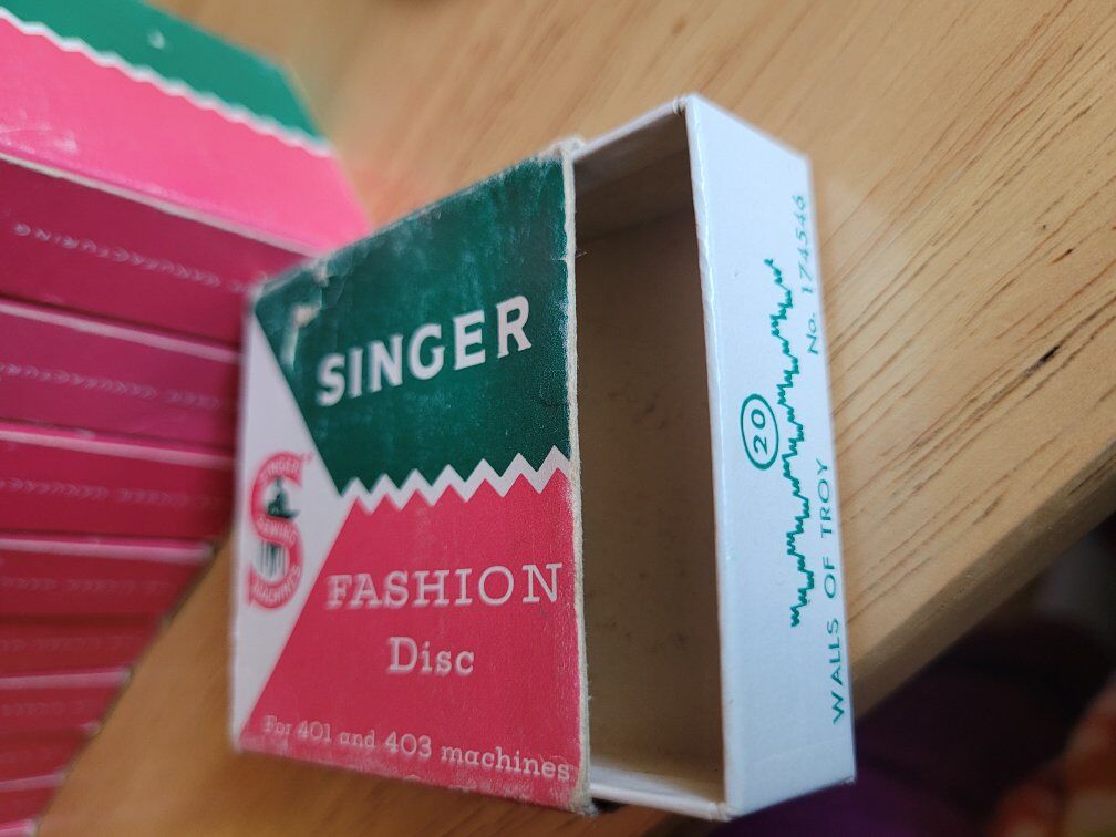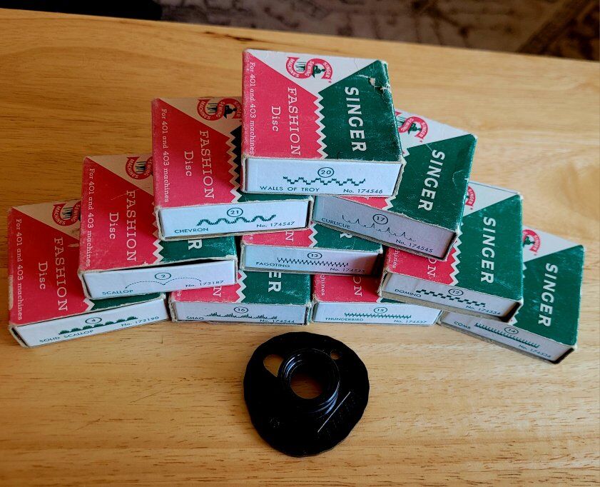 Venmo10 singer sewing machine cams with hard to find box! you will get 9 cams with matching box, 1 box only (#20) and 1 cam only ( #9 no matching box). these original singer boxes are getting so hard to find! grab these while you still can! use as display peices, hang them on your Christmas tree! Frame them! all peices (including boxes) have been wiped down clean and are ready for wrapping or displaying!! box only #20 cam only #9 21, 17, 16, 15 14, 13, 12, 4 and 2 are cams with matching boxes