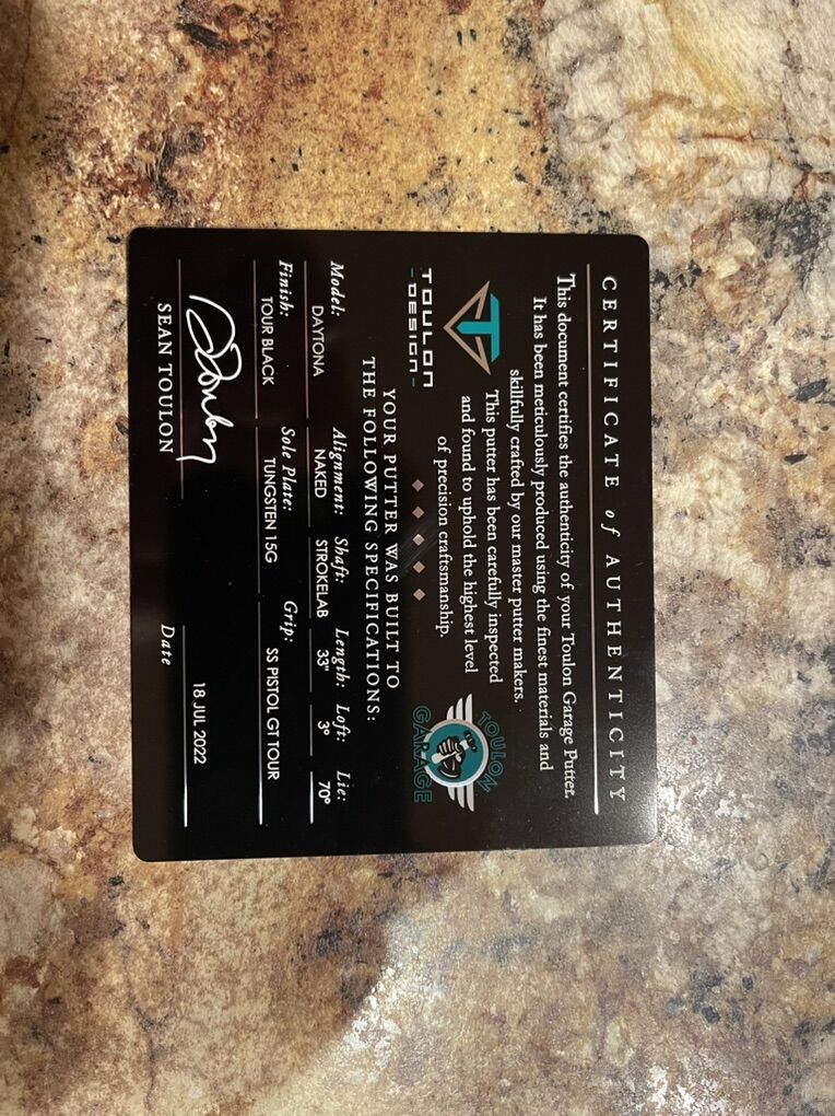 Odyssey Toulon Garage Daytona Putter. New! 33” Stroke Lab Counterbalanced Shaft, no sightline. COA List $499.00 Sale $325.00 OBO